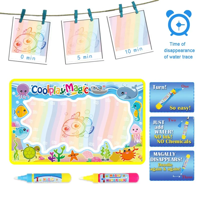 Просто нужно наполнить водой, чтобы рисовать, и она исчезнет после нескольких минитов, дети могут нарисовать ее снова и снова, родители больше не беспокоятся о беспорядке.