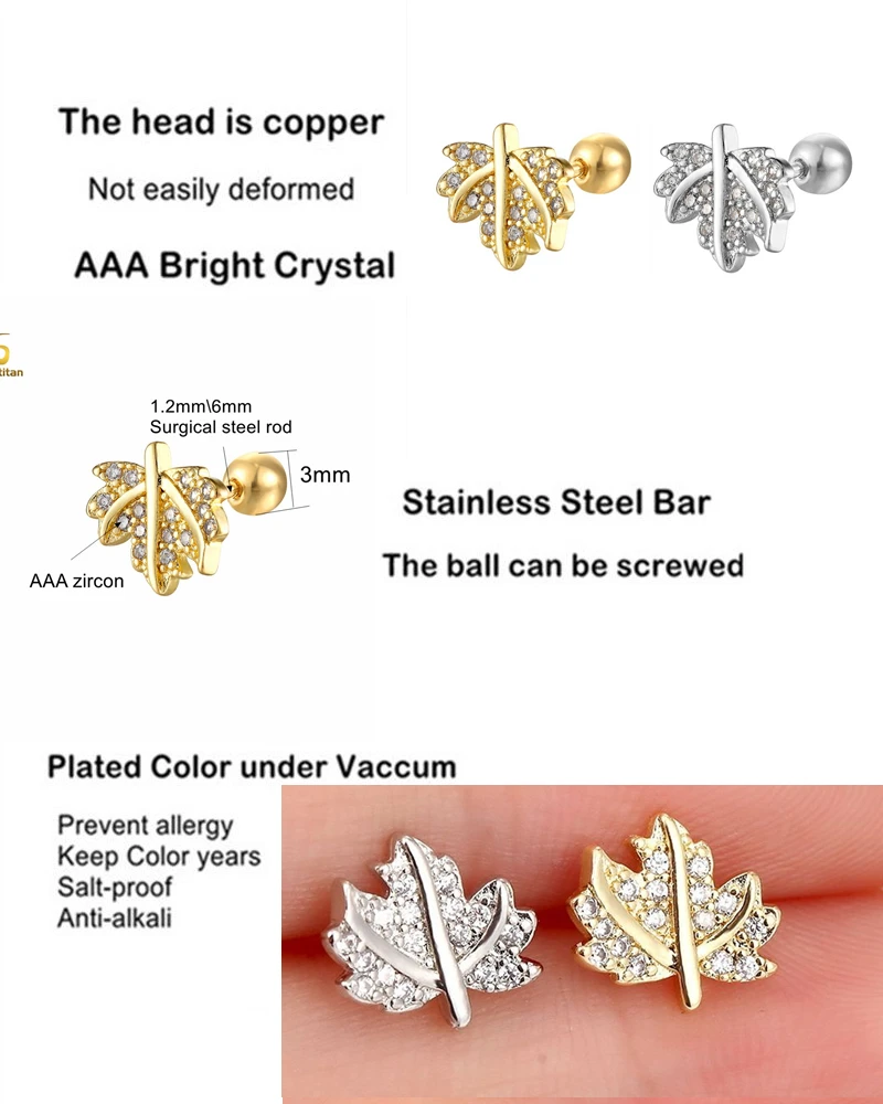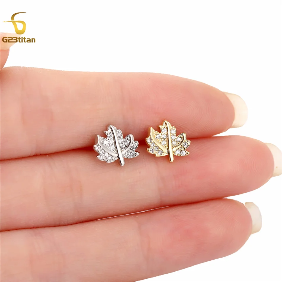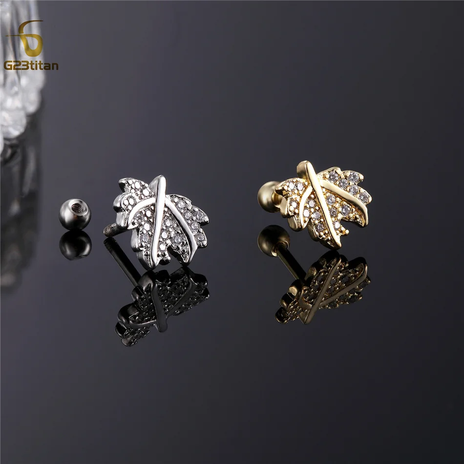 Серьги-гвоздики в виде клена, Женские Ювелирные изделия из нержавеющей стали для прокола хрящевой ткани козелка уха, 16 г
