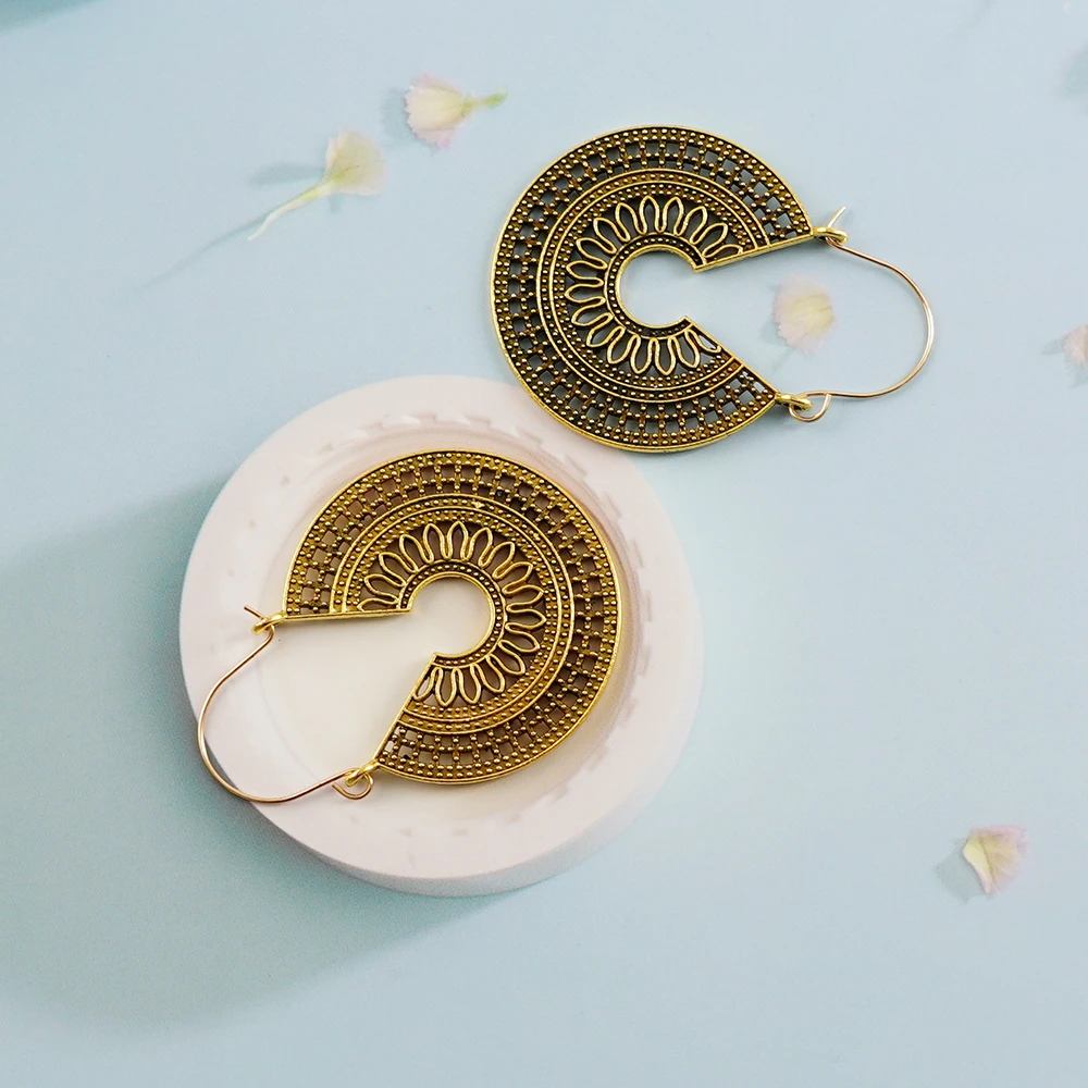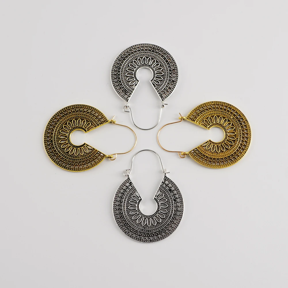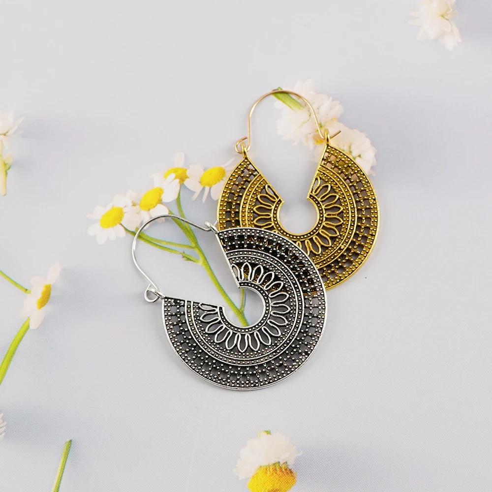 Винтажные серьги-подвески LeeSell в виде геометрических элементов под старину, серебряного цвета, золотого цвета, с полыми цветами, серьги для пирсинга, эффектные ювелирные изделия