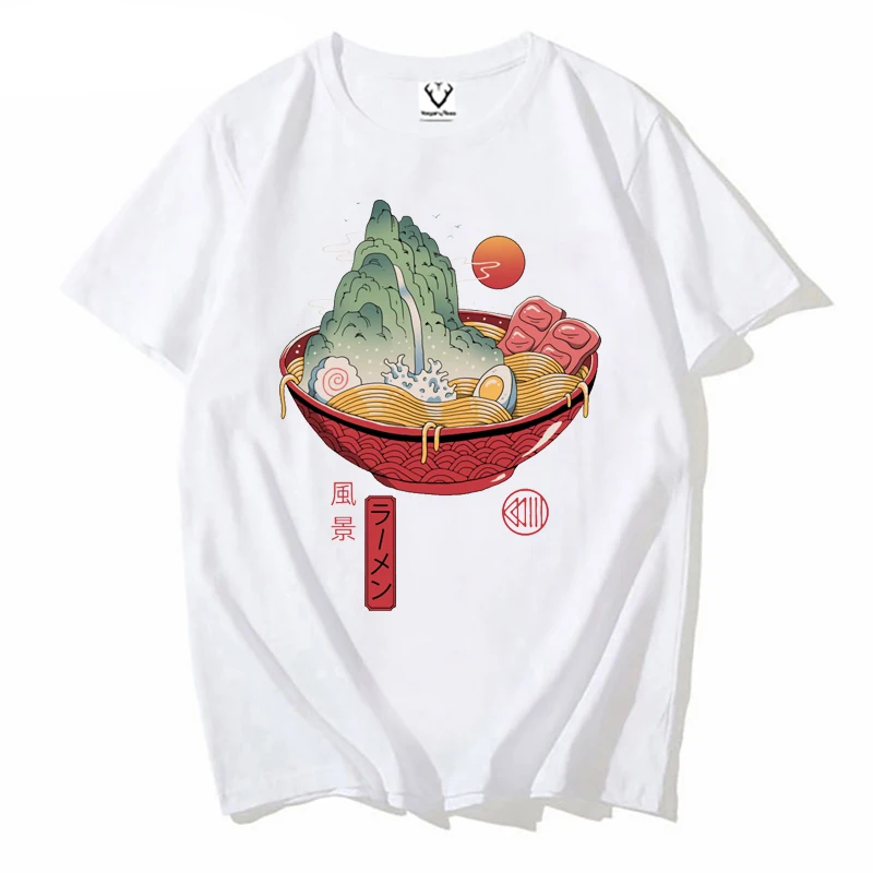 Футболка мужская в стиле японского аниме, повседневная смешная рубашка в стиле Харадзюку, с принтом еды, рамен, пейзаж, уличная одежда унисекс, лето