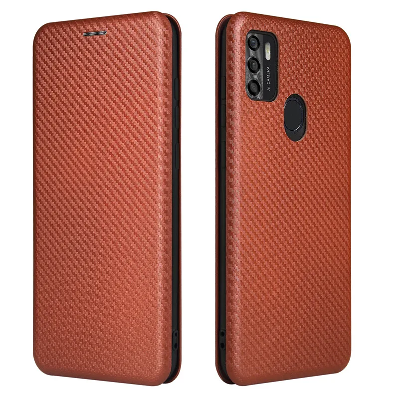 Чехол TCL 20 SE, кожаный чехол-книжка из углеродного волокна для TC...