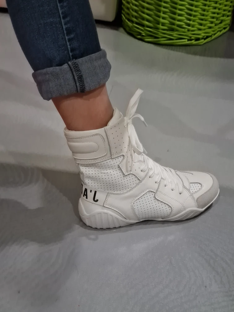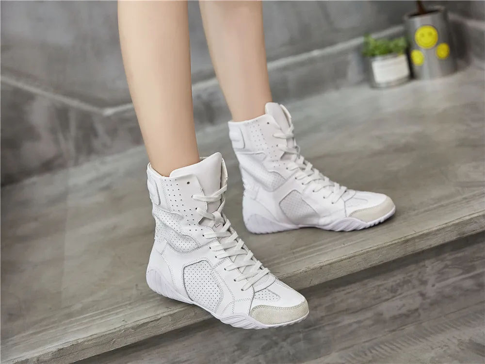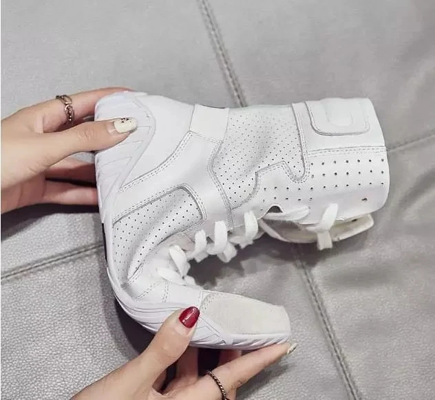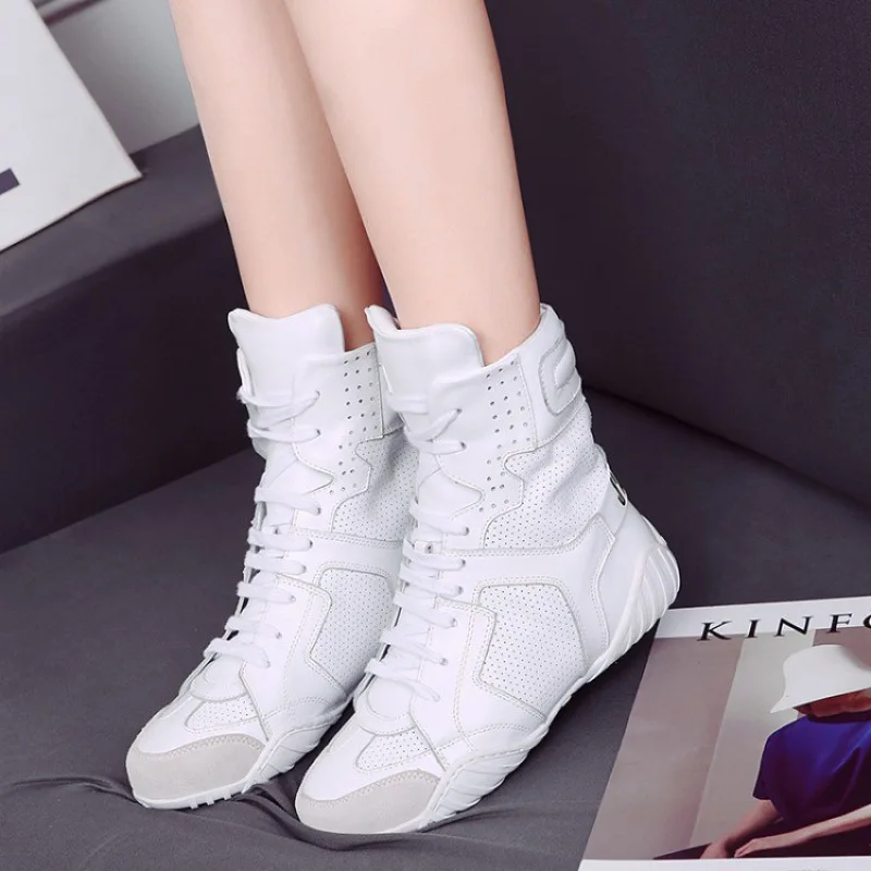 Кроссовки женские высокие, Повседневная дышащая обувь на плоской подошве, модные однотонные, белые, весна-лето