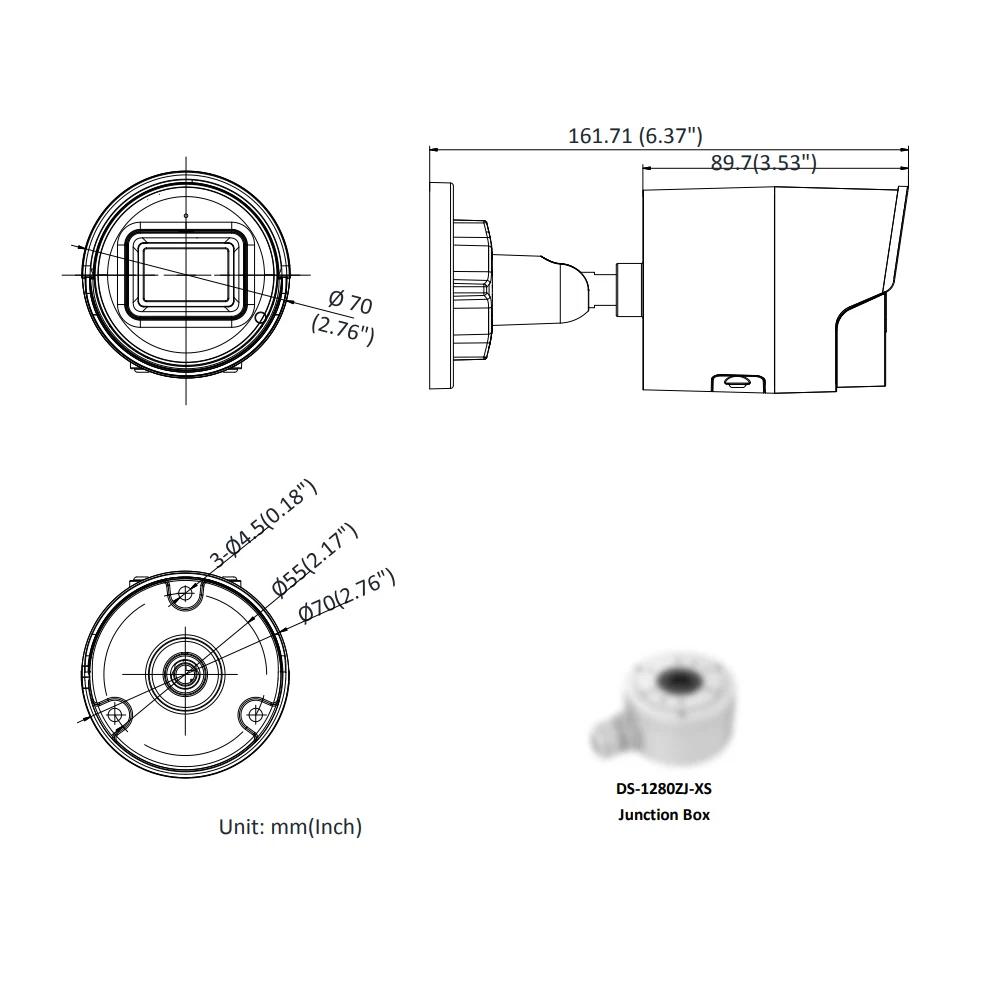 1.Camera : Image Sensor : 1/1.8" Progressive Scan CMOSMin. Illumination : Color: 0.003 Lux @ (F1.6, AGC ON), 0 Lux with IRShutter Speed : 1/3 s to 1/100,000 sSlow Shutter : YesP/N : YesDay & Night : IR Cut FilterWDR : 120 dBAngle Adjustment : Pan: 0° to 360°, tilt: 0° to 75°, rotate: 0° to 360°Power-Off Memory : Yes2.Lens :Lens Type : Fixed lens, 2.8/4/6 mmAperture : F1.6FOV : 2.8 mm, horizontal FOV: 102°, vertical FOV: 55°, diagonal FOV: 120°;4 mm, horizontal FOV: 87.1°, vertical FOV: 47.4°, diagonal FOV: 101.8°;6 mm, horizontal FOV: 50.8°, vertical FOV: 27.6°, diagonal FOV: 60°Lens Mount : M163.Illuminator :IR Range : Up to 40 mWavelength : 850 nmSmart Supplement Light : Yes4.Deep Learning Function :Perimeter Protection : Line crossing detection, intrusion detection, region entrance detection, region exiting detection (Human&Vehicle classification)5.Video : Max. Resolution : 3840 × 2160Main Stream : 50Hz: 20fps (3840 × 2160, 3072 × 1728), 25fps (2688 × 1520,1920 × 1080, 1280 × 720)>60Hz: 20fps (3840 × 2160, 3072 × 1728), 30fps (2688 × 1520,1920 × 1080, 1280 × 720)Sub-Stream : 50Hz: 25fps (640 × 480, 640 × 360, 320 × 240)>60Hz: 30fps (640 × 480, 640 × 360, 320 × 240)Third Stream : 50Hz: 25fps (1280 × 720, 640 × 480, 640 × 360, 320 × 240)>60Hz: 30fps (1280 × 720, 640 × 480, 640 × 360, 320 × 240)Video Compression : Main stream: H.265+/H.264+/H.265/H.264>Sub-stream: H.265/H.264/MJPEG>Third stream: H.265/H.264H.264 Type : Baseline Profile/Main Profile/High ProfileH.265 Type : Main ProfileVideo Bit Rate : 32 Kbps to 16 MbpsScalable Video Coding (SVC) : YesRegion Of Interest (ROI) : 1 fixed region for each stream6.Audio :Environment Noise Filtering : -U: YesAudio Sampling Rate : -U: 8 kHz/16 kHz/32 kHz/44.1 kHz/48 kHzAudio Compression : -U: G.711ulaw/G.711alaw/G.722.1/G.726/MP2L2/PCM/MP3Audio Bit Rate : -U: 64Kbps(G.711ulaw/G.711alaw)/16Kbps(G.722.1)/16Kbps(G.726)/32-192Kbps(MP2L2)/8-320Kbps(MP3)Audio Type : -U: Mono sound7.Smart Feature-Set :Smart Event : Perimeter Protection: line crossing detection, intrusion detection, region entrance detection, region exiting detection (Human&Vehicle classification)Face Capture : YesBasic Event : Motion detection, video tampering alarm, exception (network disconnected,IP address conflict, illegal login, HDD full, HDD error), scene change detectionLinkage Method : Upload to FTP/NAS/memory card, notify surveillance center, send email,trigger captureRegion of Interest : 1 fixed region for main stream, sub-stream and third stream8.Image :Image Enhancement : BLC, HLC, 3D DNRImage Setting : Saturation, brightness, contrast, sharpness, AGC and white balance adjustable by client software or web browserDay/Night Switch : Day/Night/Auto/Schedule9.Network : Network Storage : microSD/SDHC/SDXC card (256 GB), local storage and NAS (NFS,SMB/CIFS), ANRProtocols : TCP/IP, ICMP, HTTP, HTTPS, FTP, DHCP, DNS, DDNS, RTP, RTSP, PPPoE, NTP, UPnP,SMTP, SNMP, IGMP, 802.1X, QoS, IPv6, UDP, Bonjour, SSL/TLSAPI : ONVIF (PROFILE S, PROFILE G), ISAPI, SDKSecurity : Password protection, complicated password, HTTPS encryption, 802.1X authentication (EAP-MD5), watermark, IP address filter, basic and digest authentication for HTTP/HTTPS,WSSE and digest authentication for ONVIF, TLS1.2Simultaneous Live View : Up to 6 channelsUser/Host : Up to 32 users, 3 levels: administrator, operator and userClient : iVMS-4200, Hik-Connect, Hik-CentralWeb Browser : Plug-in required live view: IE8+, Chrome 41.0-44, Firefox30.0-51, Safari8.0-11, Plug-in free live view: Chrome 57.0+, Firefox 52.0+10.Interface : Communication Interface : 1 RJ45 10M/100M self-adaptive Ethernet portAudio (-U) : Built-in microphoneOn-board storage : Built-in micro SD/SDHC/SDXC slot, up to 256 GB11.Approval : Protection : Ingress protection: IP67 (IEC 60529-2013)EMC : CE-EMC (EN 55032: 2015, EN 61000-3-2: 2014, EN 61000-3-3: 2013, EN 50130-4: 2011 +A1: 2014); RCM (AS/NZS CISPR 32: 2015); IC (ICES-003: Issue 6, 2016); KC (KN 32: 2015, KN 35: 2015)Safety : UL (UL 60950-1); CB (IEC 60950-1:2005 + Am 1:2009 + Am 2:2013); CE-LVD (EN 60950-1:2005 + Am 1:2009 + Am 2:2013); BIS (IS 13252(Part 1):2010+A1:2013+A2:2015); LOA (IEC/EN 60950-1)Environment : CE-RoHS (2011/65/EU); WEEE (2012/19/EU); Reach (Regulation (EC) No 1907/2006)12.General : Web Client Language : 32 languages:English, Russian, Estonian, Bulgarian, Hungarian, Greek, German, Italian, Czech, Slovak, French, Polish, Dutch, Portuguese, Spanish, Romanian, Danish, Swedish, Norwegian, Finnish, Croatian,Slovenian, Serbian, Turkish, Korean, Traditional Chinese, Thai,Vietnamese, Japanese, Latvian,Lithuanian, Portuguese (Brazil)General Function : Mirror, password protection, privacy mask, watermark, IP address filter, one-key reset, anti-flicker, three streams, heartbeatReset : web browser and client softwareLinkage Method : Upload to FTP/NAS/memory card, notify surveillance center, send email, trigger recording, trigger capture Trigger recording: memory card, network storage, pre-record and post-record Trigger captured pictures uploading: FTP, HTTP, NAS, Email Trigger notification: HTTP, ISAPI, alarm output, EmailStorage Conditions : -30 °C to 60 °C (-22 °F to 140 °F). Humidity 95% or less (non-condensing)Startup And Operating Conditions : -30 °C to 60 °C (-22 °F to 140 °F). Humidity 95% or less (non-condensing)Power Supply : 12 VDC ± 25%, Φ 5.5 mm coaxial power plug; reverse polarity protection;PoE (802.3af, class 3)Power Consumption and Current : 12 VDC, 0.48 A, max. 5.8 W; PoE (802.3af, 36 V to 57 V), 0.19 A to 0.12 A, max. 6.8 WMaterial : Camera body: metal, trim ring: plasticDimensions : Camera: Φ70 ×161.7 mm (Φ2.76" × 6.37");With package: 216 × 121 × 118 mm (8.5" × 4.8" ×4.6")Weight : Camera: approx. 500 g (1.1 lb.);With package: 710 g (1.6 lb.)
