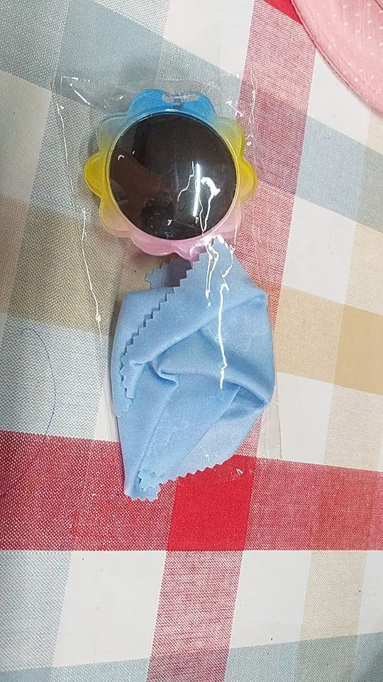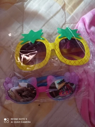 Милые очки, дети в восторге! Удивительно что по размеру подходит и на 3 года и на 11 лет. Надеюсь быстро их не убьют, все отпечатки конечно видны как под микроскопом. Наклейку с линзы сняла легко с помощью скотча. Наверно закажу ещё одни про запас)