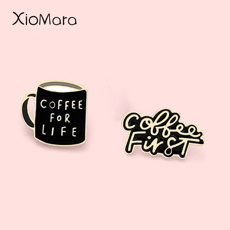 Эмалированная булавка Coffee First Life, черная кружка для кофе зна...