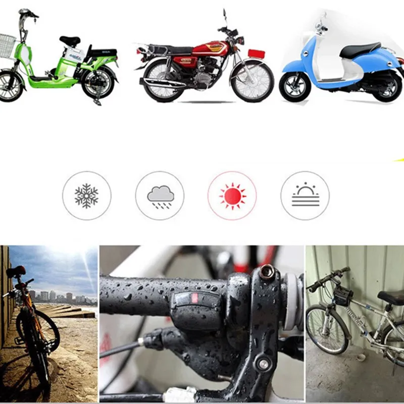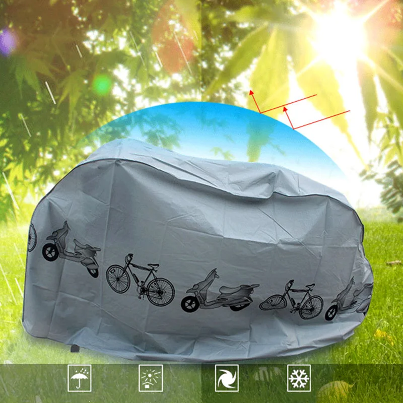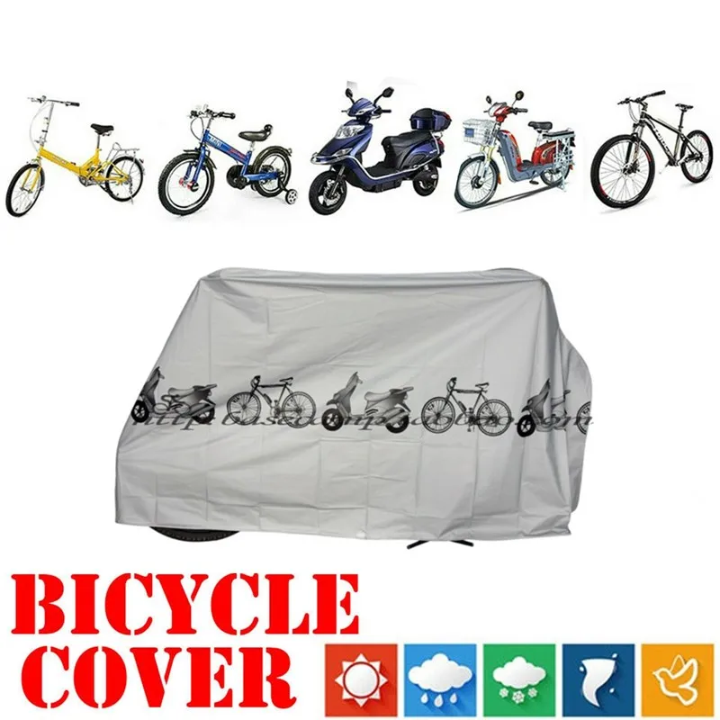 -Водонепроницаемый и солнечный экран.-Текстура мягкая, подходит для всех видов использования велосипедов.-100% новый и высокое качество.-100 денье двойной прошивки нейлона для прочности и долговечности.-Легкая крышка, можно сложить в небольшой размер для удобного хранения-Подходит для большинства велосипедов, скутеров, мотоциклов.