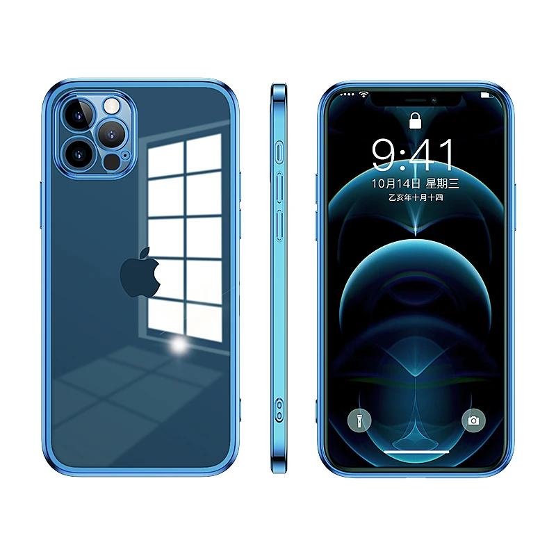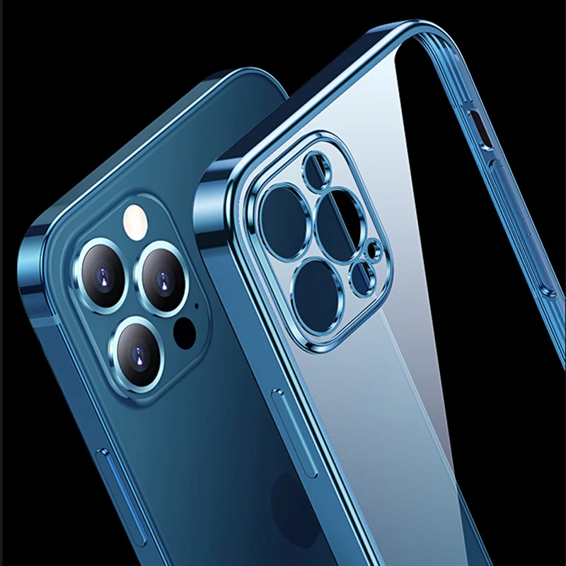 Мягкий ТПУ чехол с квадратной рамкой и покрытием для iPhone 12 Pro Max 11 XS XR 7 8 Plus, прозрачный синий тонкий прозрачный защитный чехол