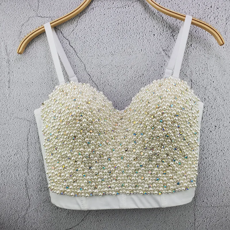 Женский бюстгальтер-Топ ручной работы, с жемчугом, украшенным брилл...