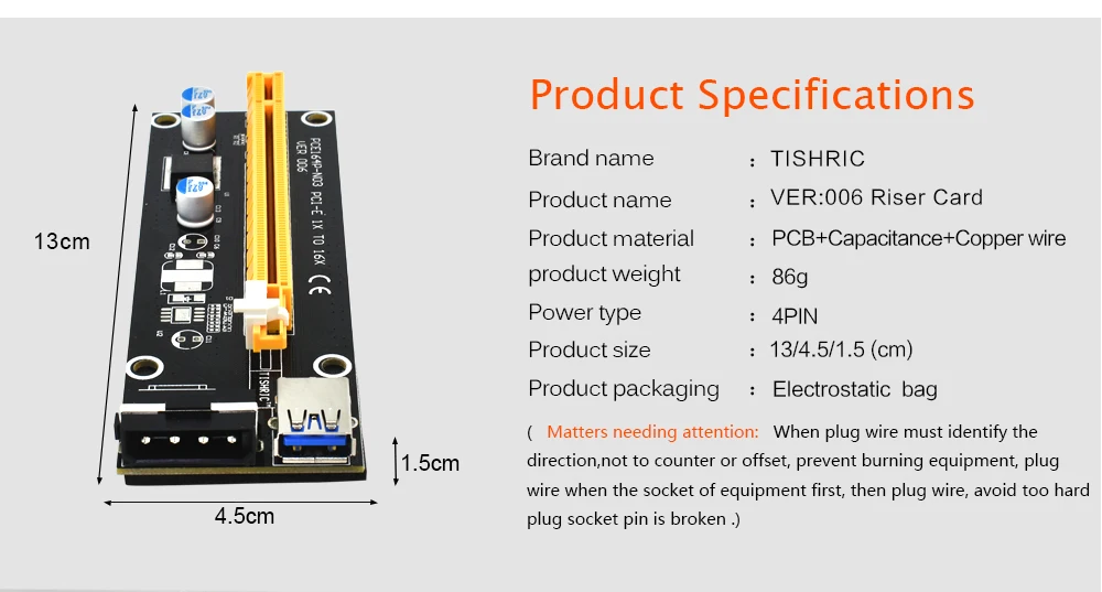 6 шт. TISHRIC PCIE Riser 006C Экспресс от 1x до 16x Райзер для видеокарты USB 3,0 SATA до 4Pin мощность Molex для майнера BTC