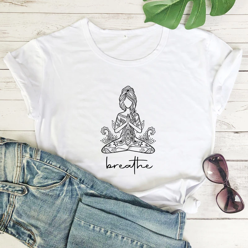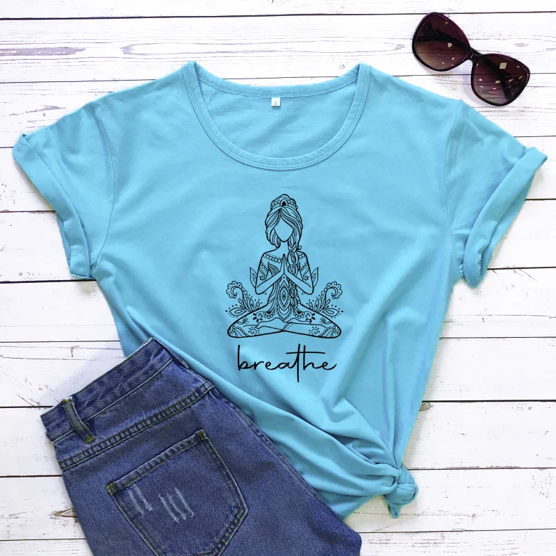 Дышащая женская футболка для медитации, футболка для тренировок в стиле бохо и йоги, забавная женская футболка с графическим принтом Namaste, футболка