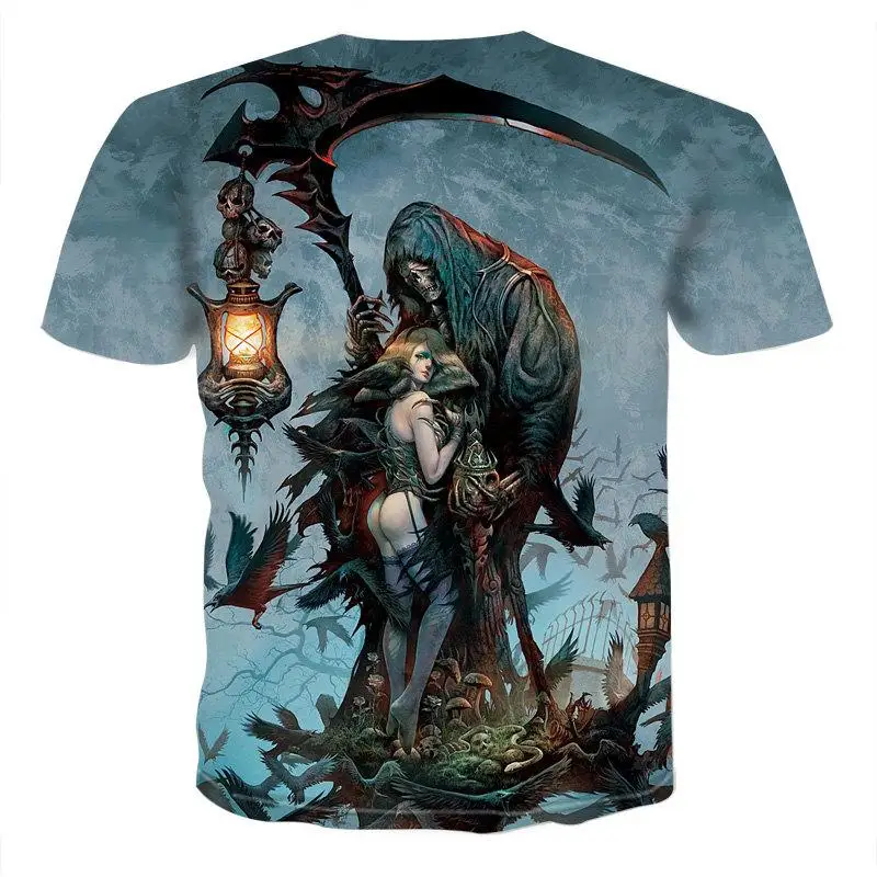 Мужские и женские футболки с 3D-принтом в виде черепа, уличная одеж...