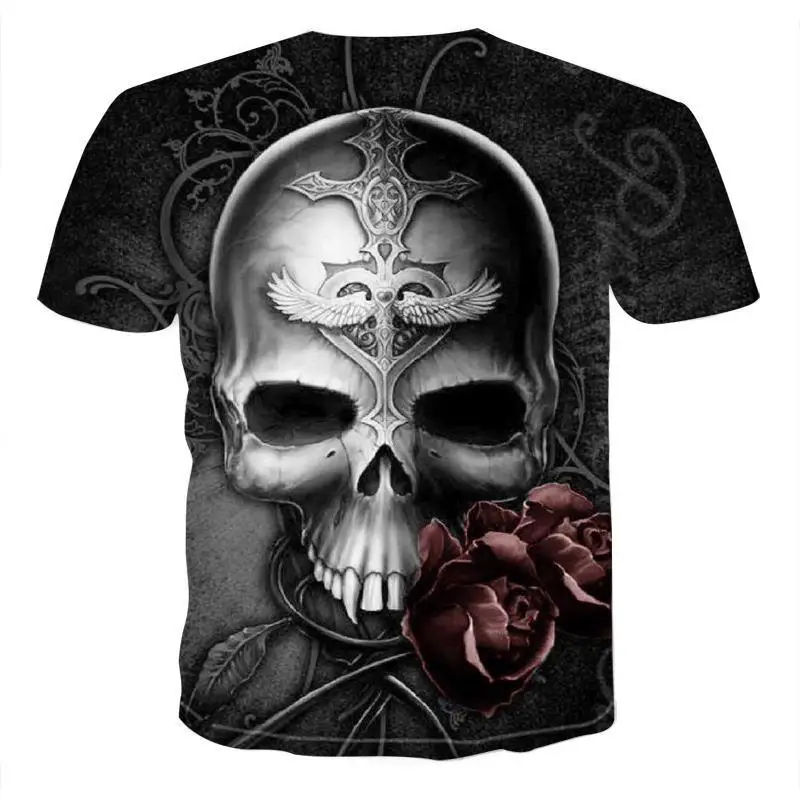 Футболки в стиле панк с 3D черепом, топы, Повседневная Уличная одеж...