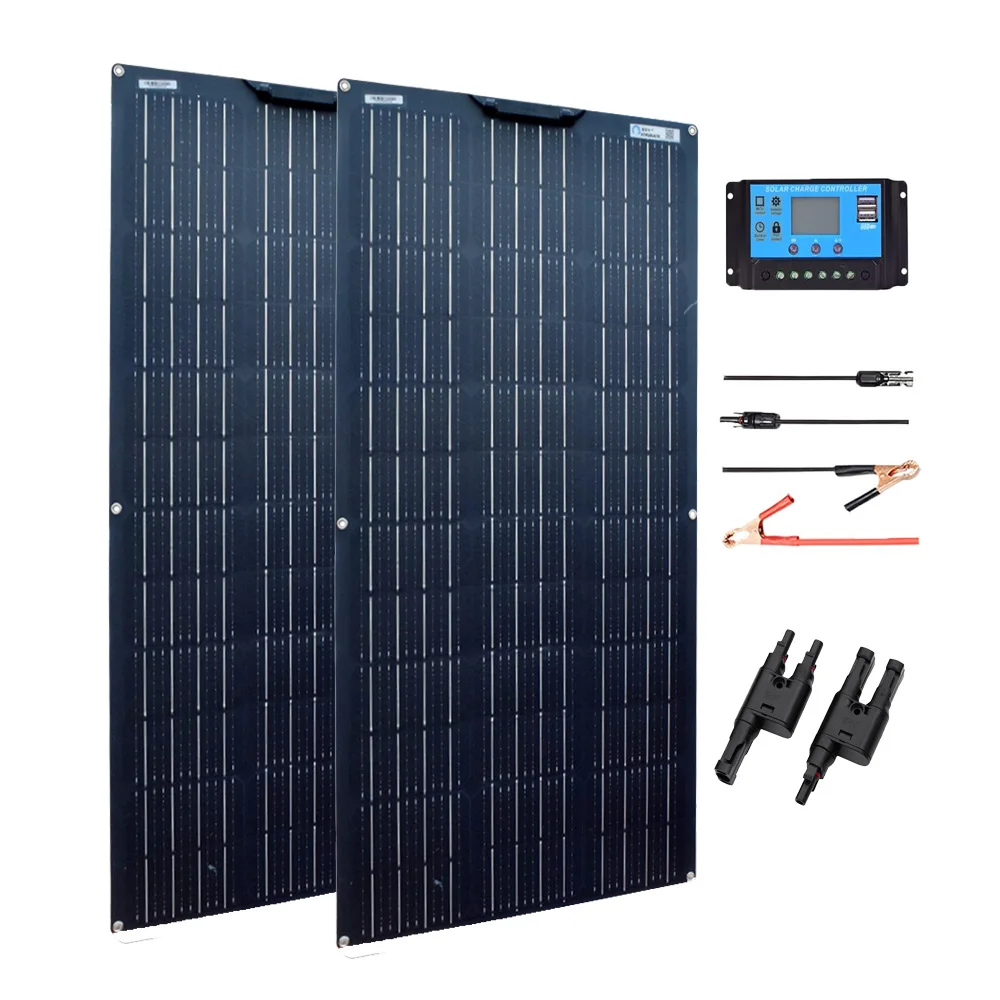 Монокристаллическая солнечная панель, 100 Вт, 200 Вт, 300 Вт, 12 В, 24 В, стартовый комплект для зарядки, 2 шт., солнечная панель 20 А, контроллер заряда, удлинитель PV для внесетевых лодок RV