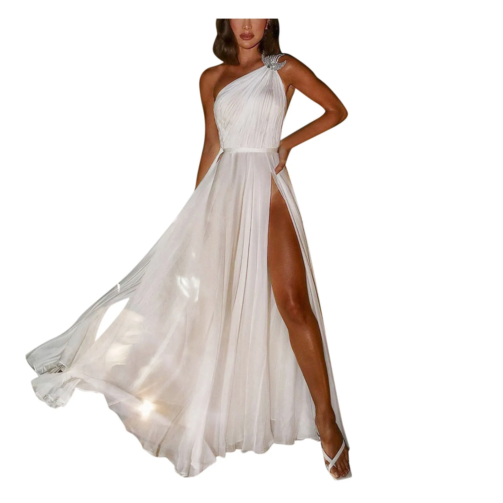 Платье женвечерние однотонное вечернее без рукавов, с диагональным воротником, из пряжи, с разрезом, платья-вилки, для вечерние НКИ и свадьбы