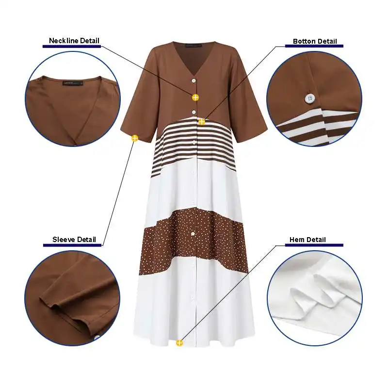 Платье-рубашка ZANZEA женское с принтом в горошек, длинный винтажный сарафан с V-образным вырезом и рукавом до локтя, лоскутное платье, на лето