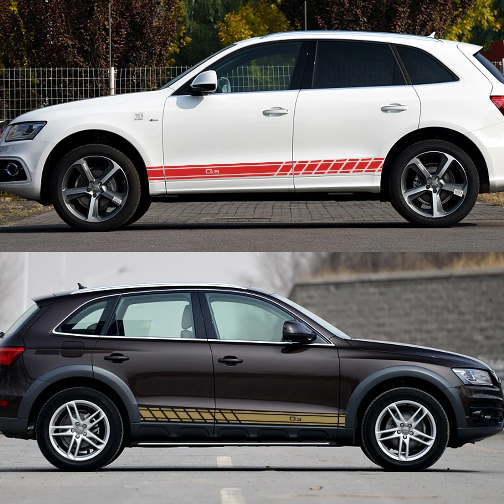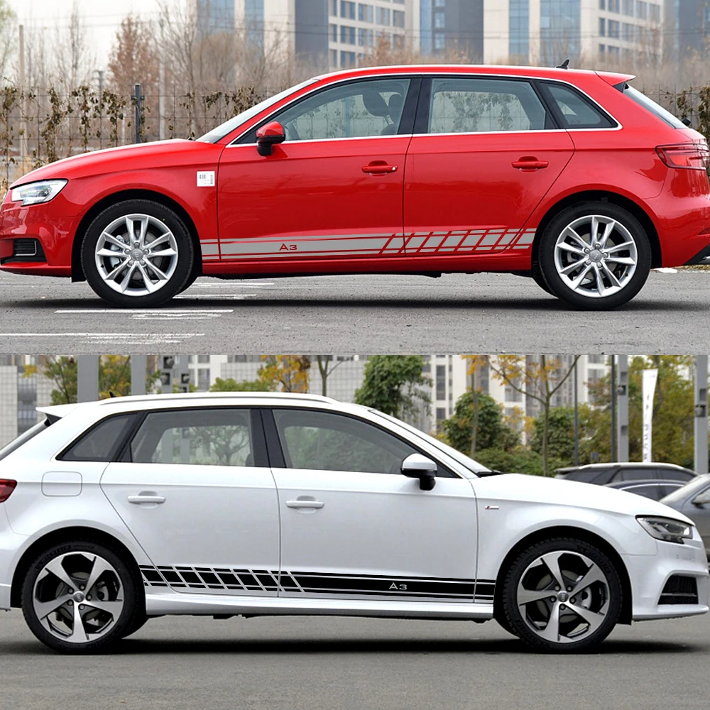 2PCS Sport Auto Door Side Skirt Stripes Decal Car Sticker For Audi ...