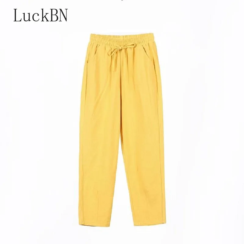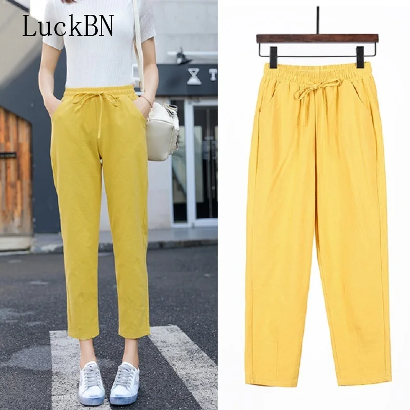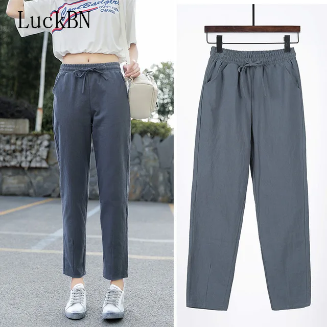 Брюки женские весенне-летние из хлопка и льна, с эластичным поясом,...