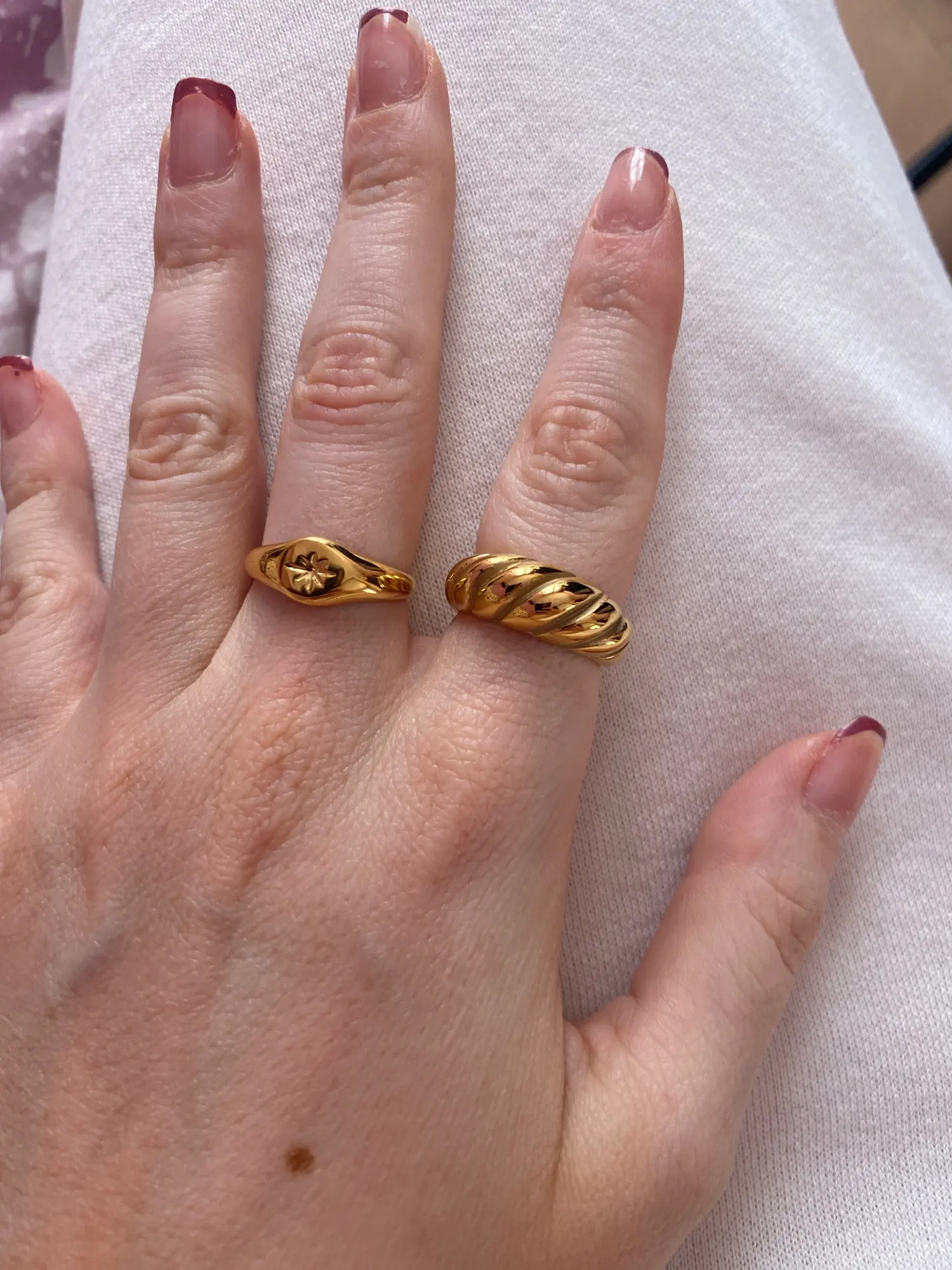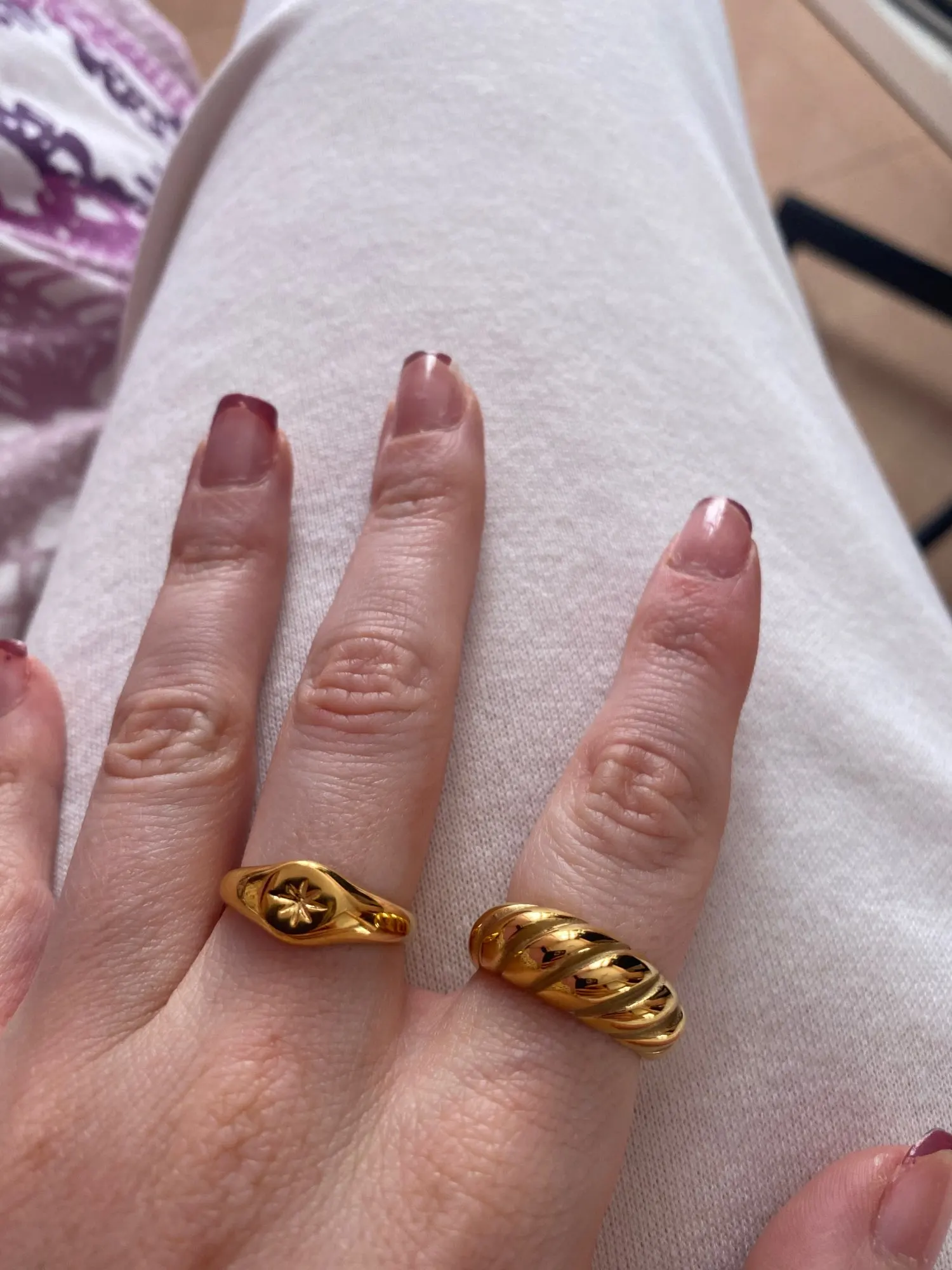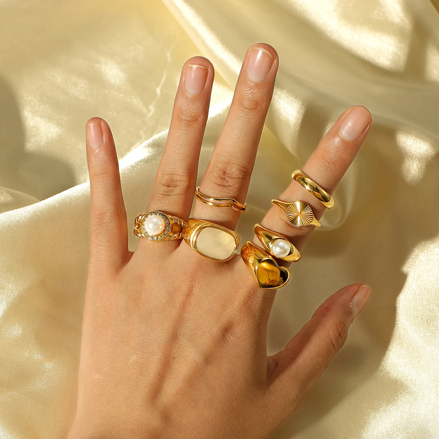 Кольцо женское из нержавеющей стали, с жемчужной ракушкой и круассаном