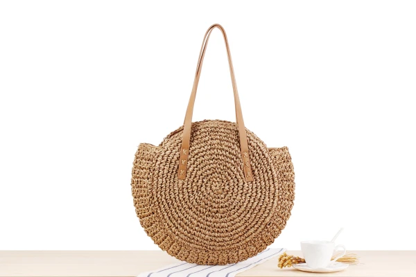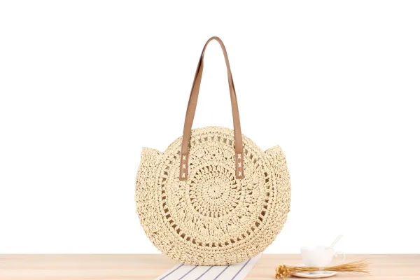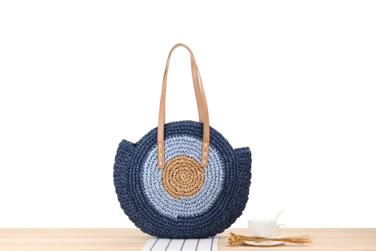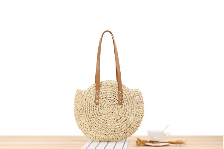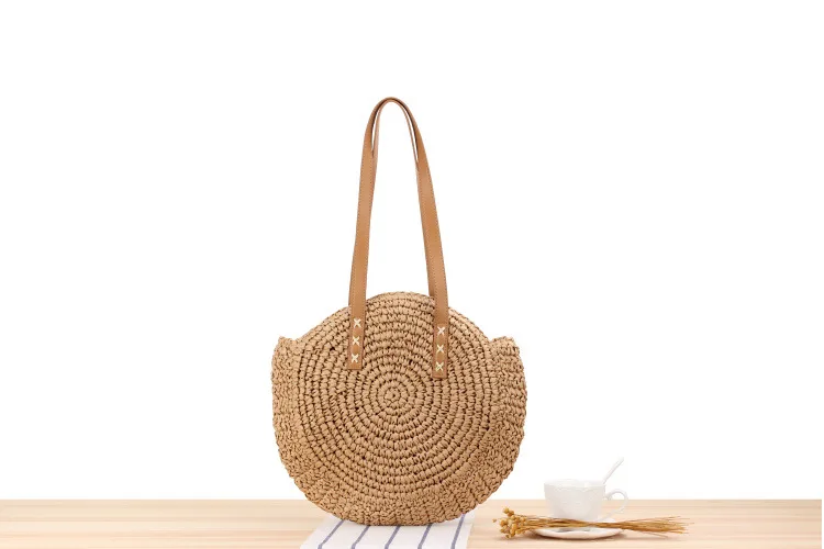 Круглая Соломенная Сумочка для женщин сумка через плечо из ротанга, плетеный пляжной Дамский саквояж кросс-боди ручной работы, вместительный тоут, лето 2021