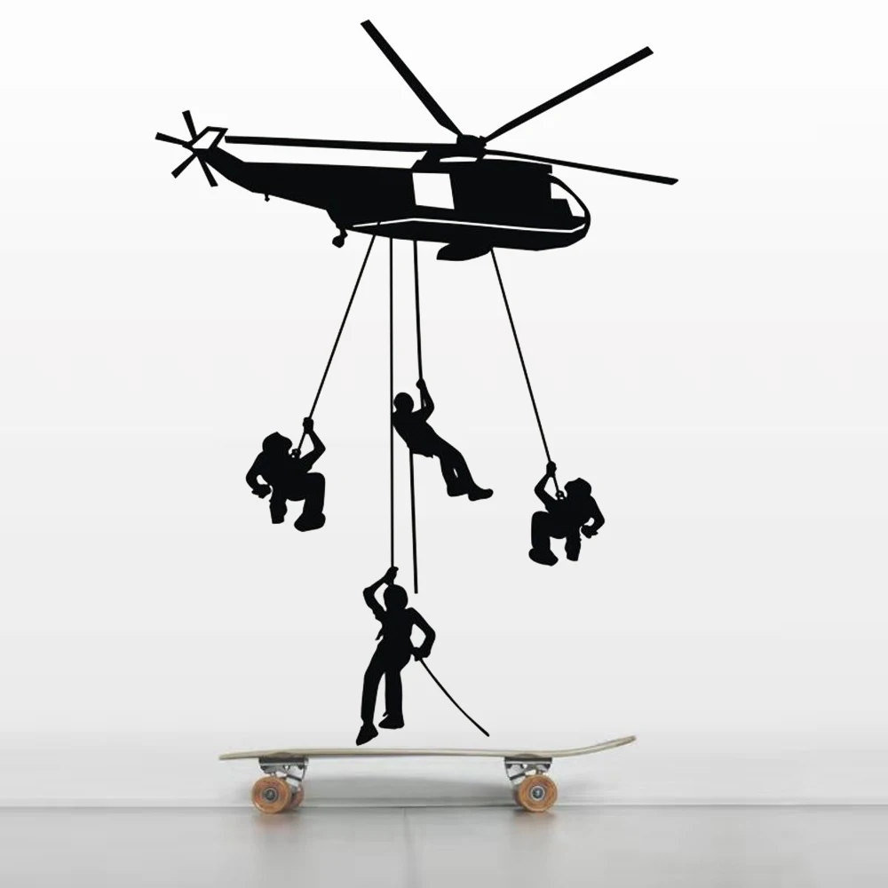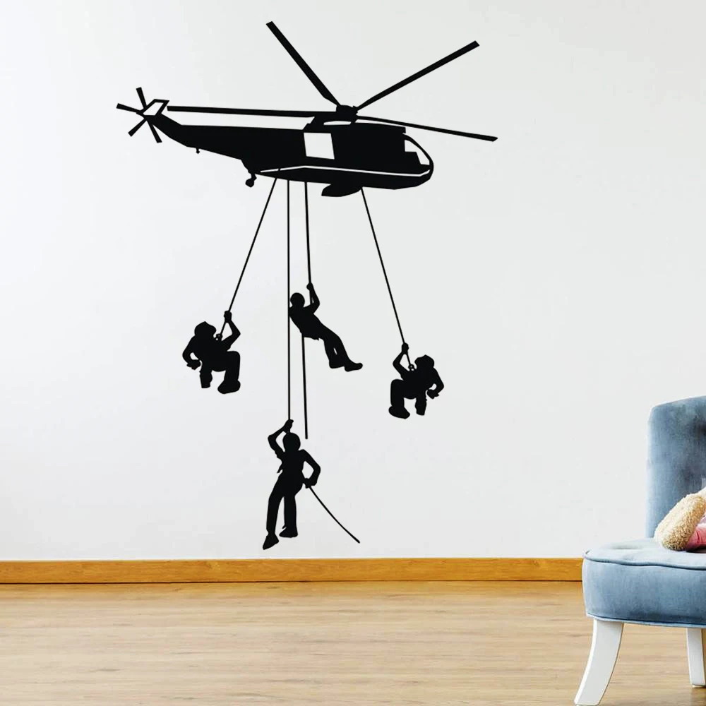 Наклейки на стену с вертолетом для детей, для мальчиков, для спальни, 4 армейских солдата, Настенный декор для детской спальни