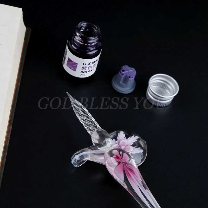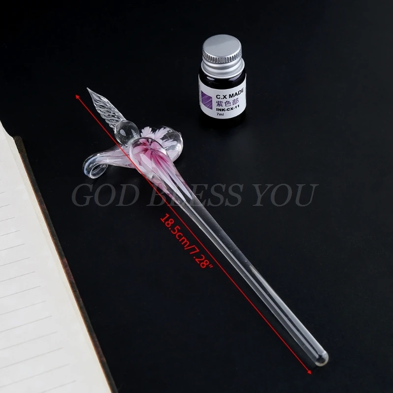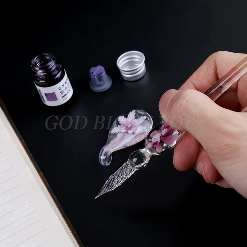 Винтаж ручной работы искусство Элегантный Кристалл Цветочные стекла Dip Pen знак чернильные ручки подарок Прямая доставка