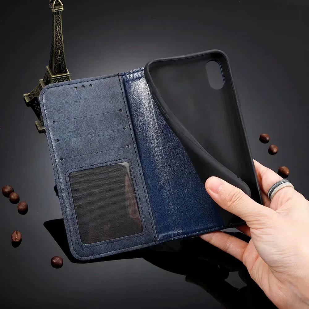 Винтажный кожаный чехол-кошелек с магнитной застежкой и подставкой ...