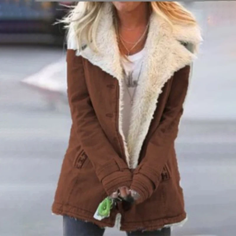 Пальто на пуговицах женская розовая куртка Верхняя одежда плюшевая Толстая зимняя отложная Женская Повседневная Классическая кожаная куртка Praka