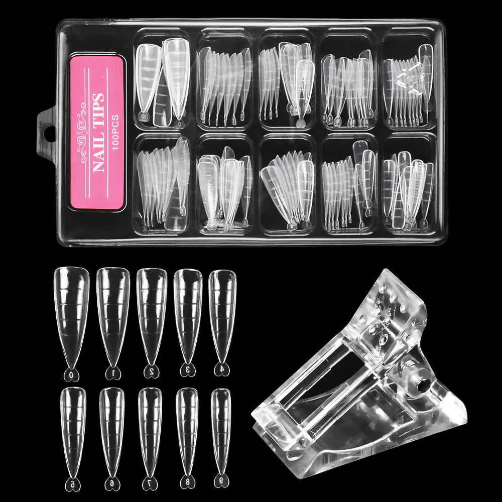 100 шт.кор. акриловые накладные ногти наконечник, инструменты для маникюра, двойные формы для наращивания ногтей, форма для дизайна ногтей с зажимом