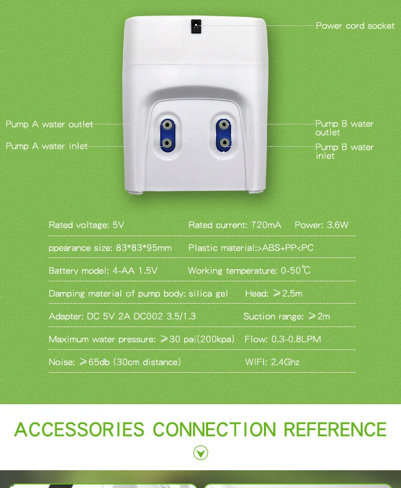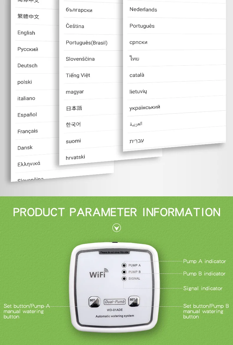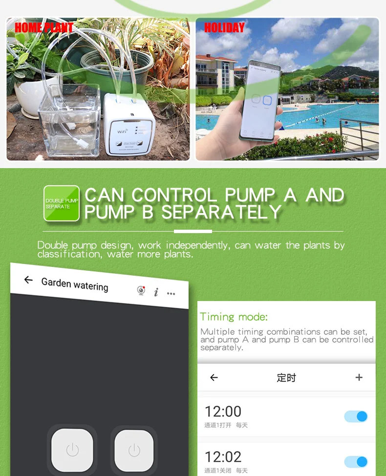 Конструкция с двойным насосом, независимая работа, классификация полива растений, полив большего количества растений.