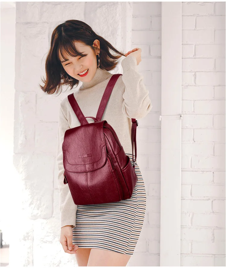 Женский вместительный рюкзак из овечьей кожи YourSeason, модный однотонный дорожный рюкзак из натуральной кожи с застежкой-молнией, в Корейском стиле, 2021