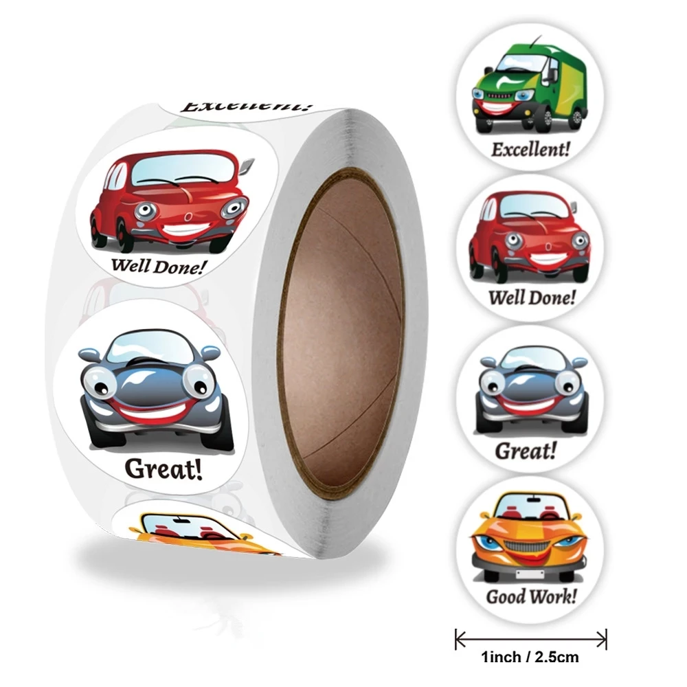 500 шт. 1 дюйм. Мультяшный автомобиль, наклейка для детского вознаг...