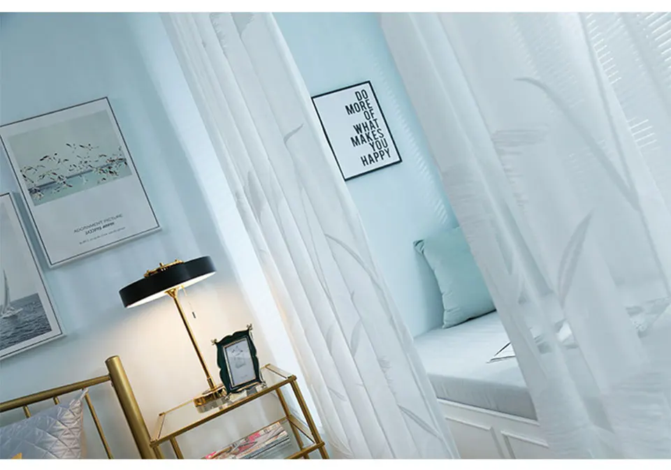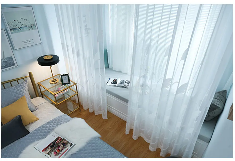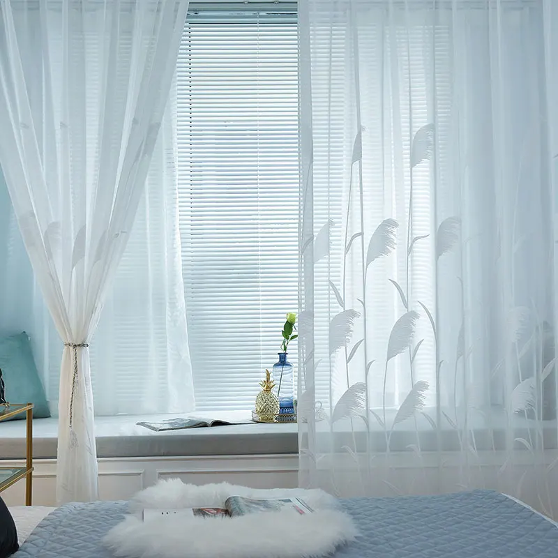 Оконные занавески с белой вышивкой, прозрачная вуаль для гостиной, ...