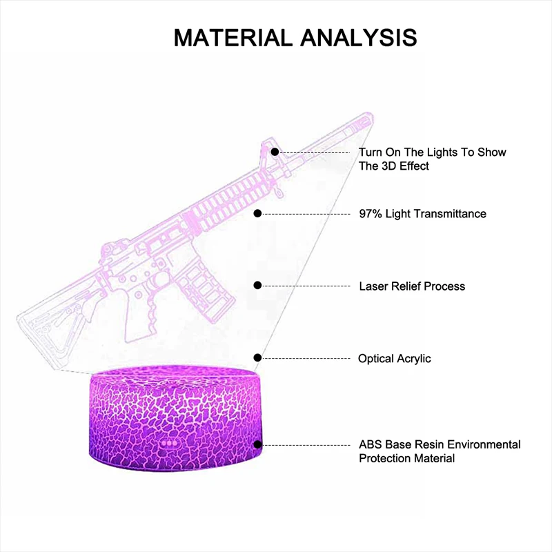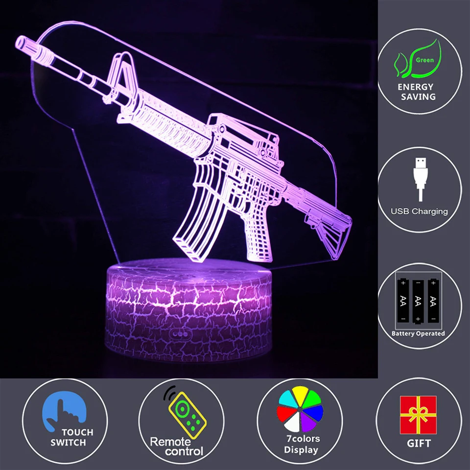 Настольная лампа с 3D иллюзией, ночные огни, винтовка, револьвер, украшение для комнаты, для детей, рождественские подарки, модель оружия