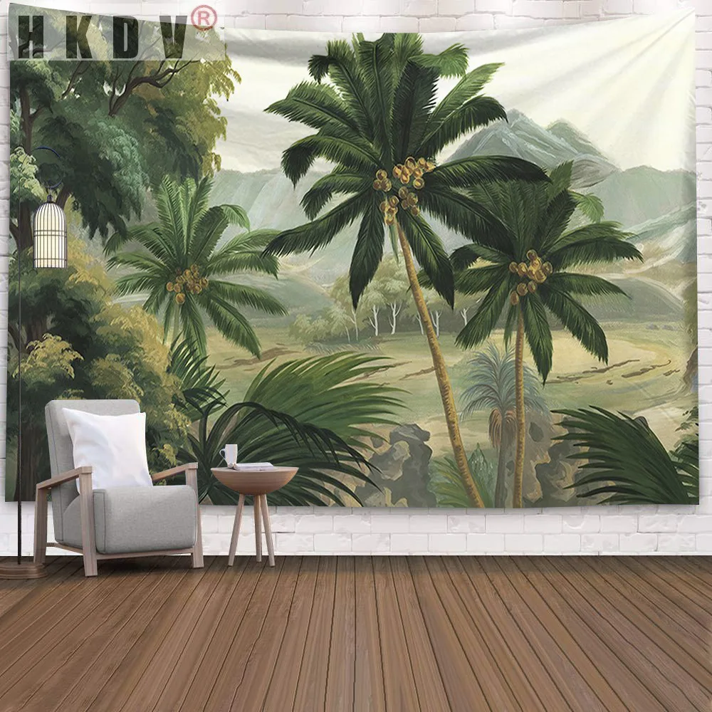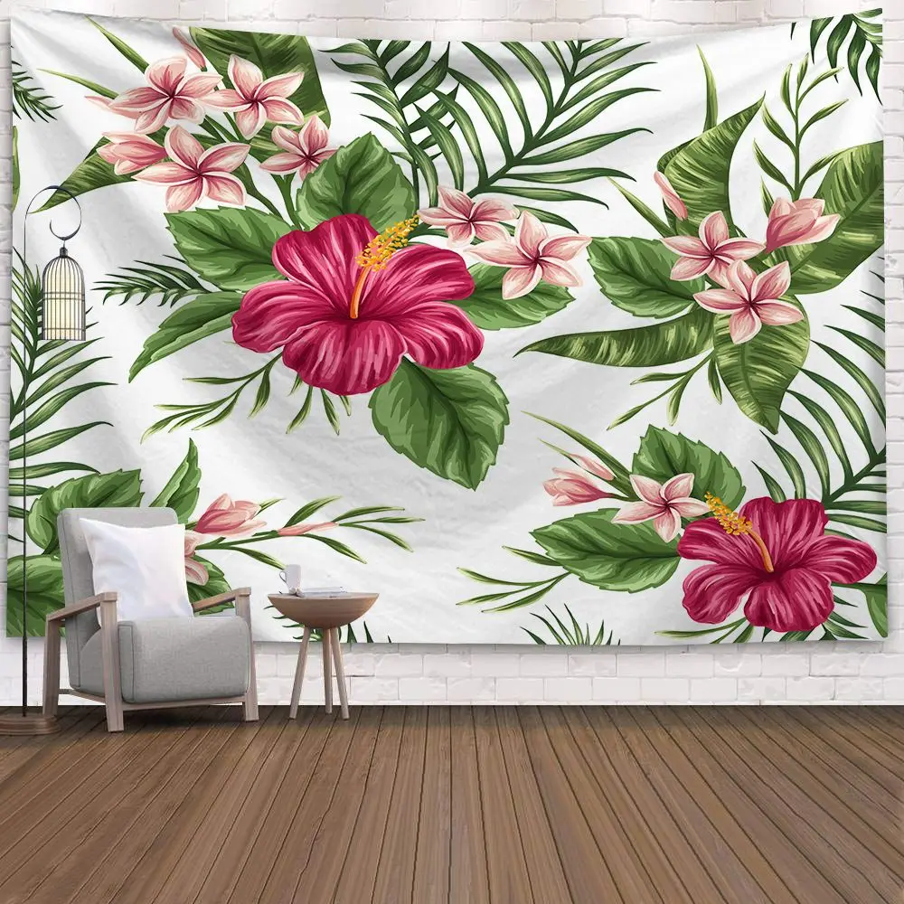 Гобелен с тропическим принтом растений, Настенный декор в скандинав...