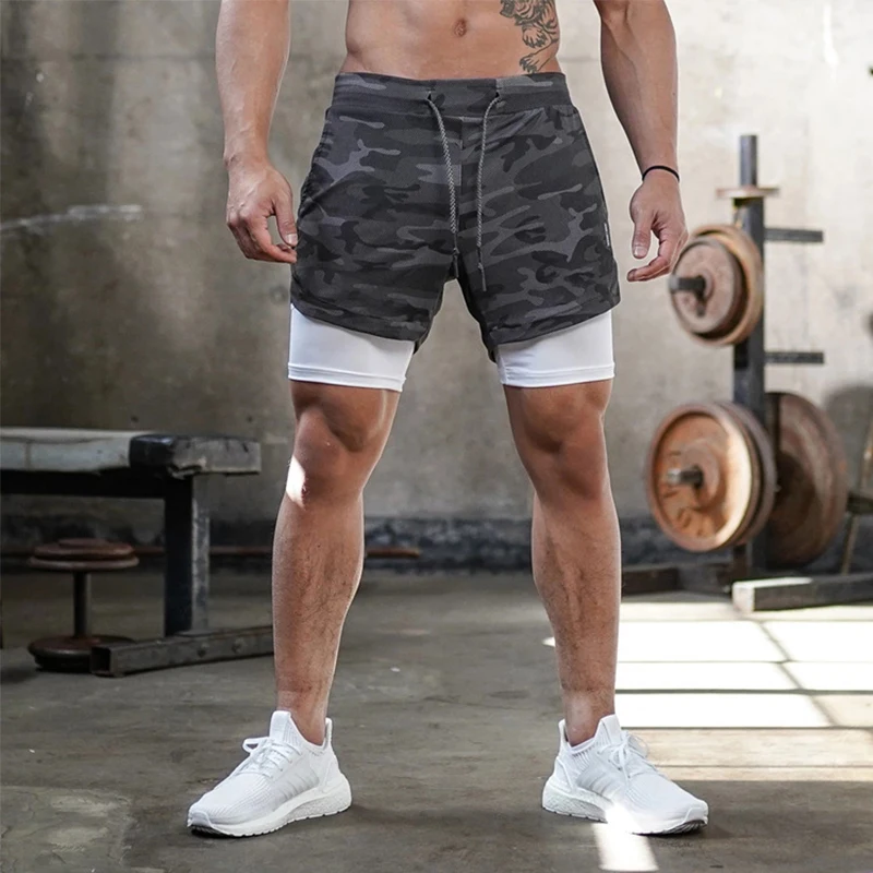 Мужские камуфляжные шорты для тренировок 2 в 1, двухуровневые быстр...
