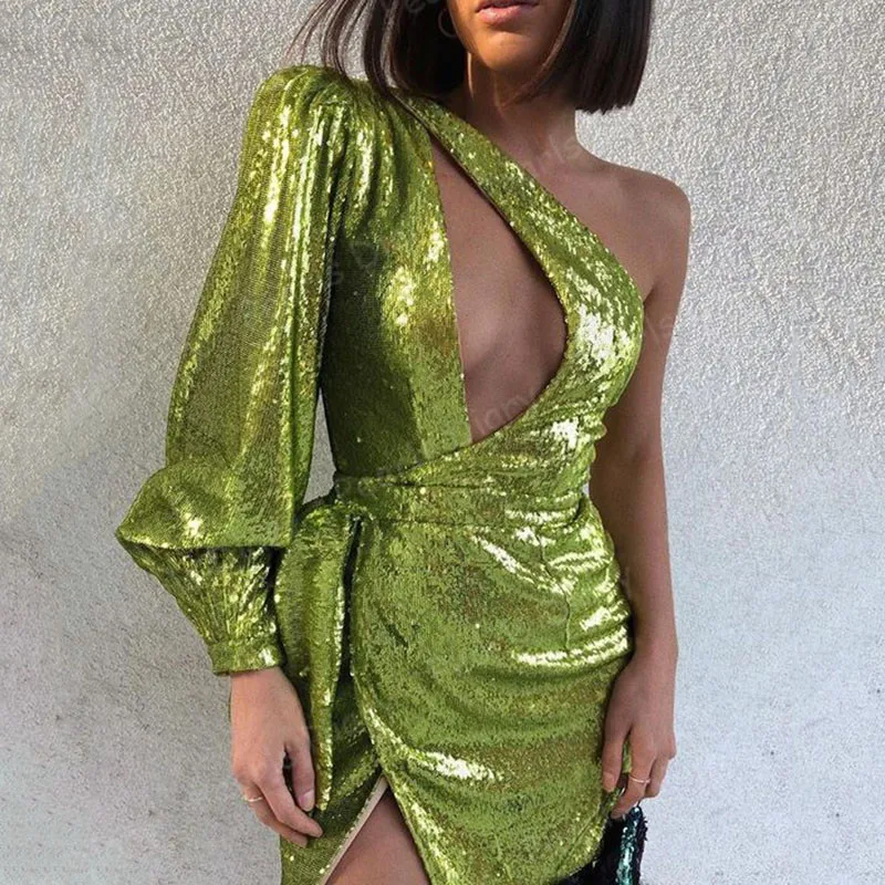 Женское короткое вечернее платье, соблазнительное коктейльное платье с пышными рукавами, бальное платье с блестками для выпускного вечера, 2021