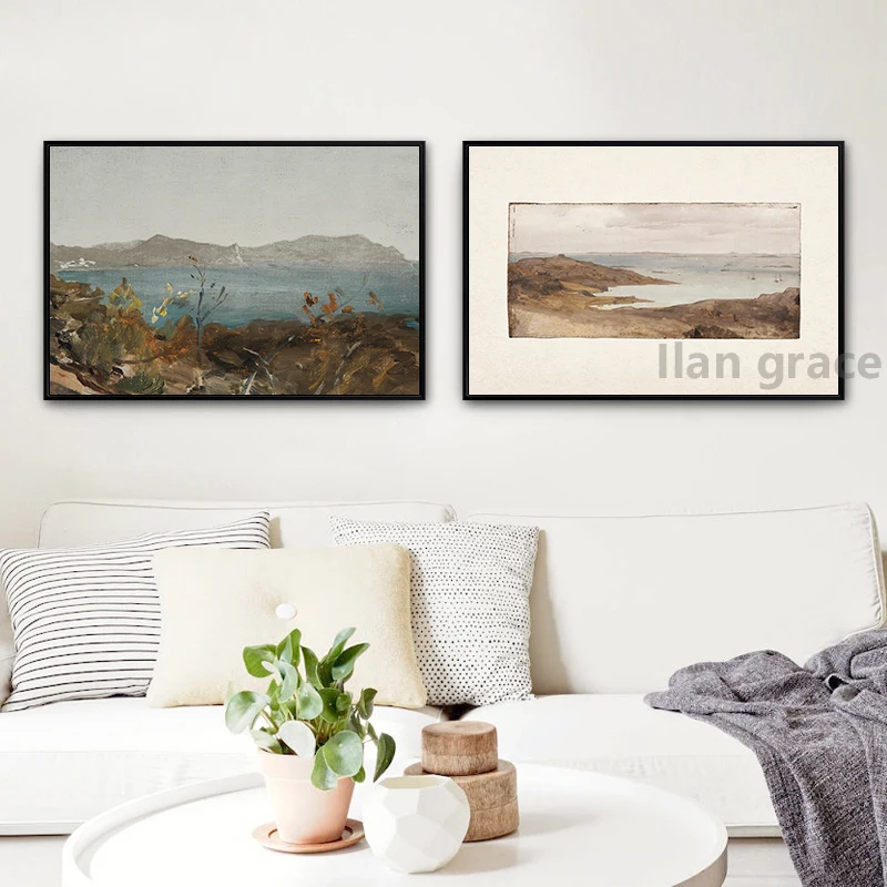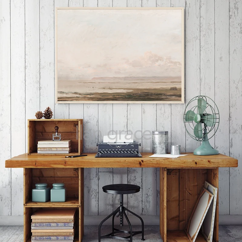 Винтажная картина маслом на холсте Pink Hazy Beach, Постер морской пейзаж, Репродукция прибрежного ландшафта, изобразительные художественные принты, декор для гостиной