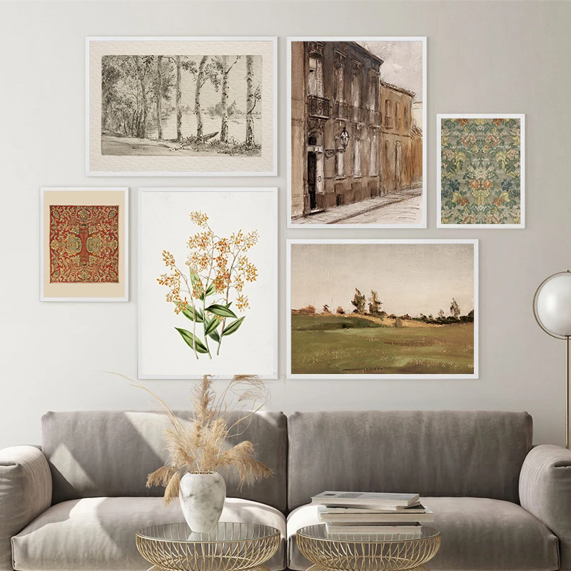 Коричневая охра, винтажная Цветочная живопись, художественные принт...