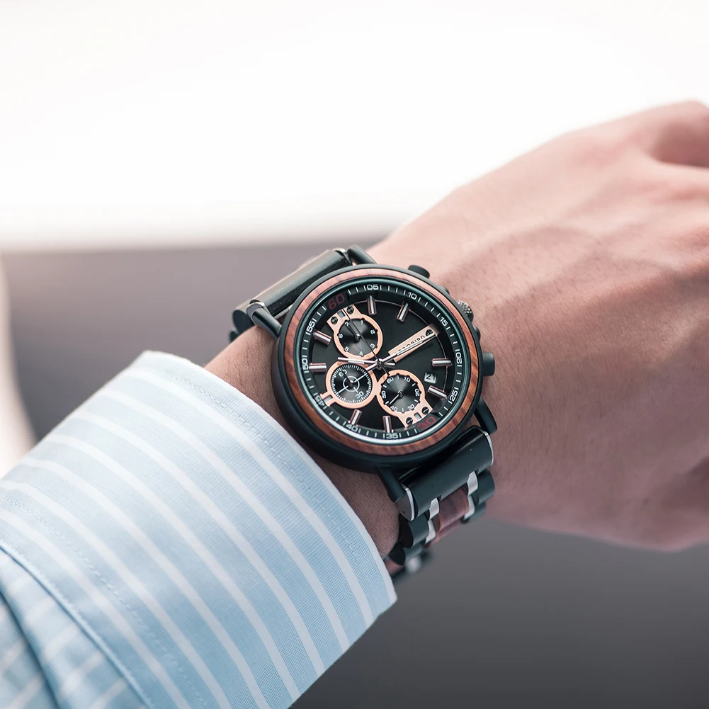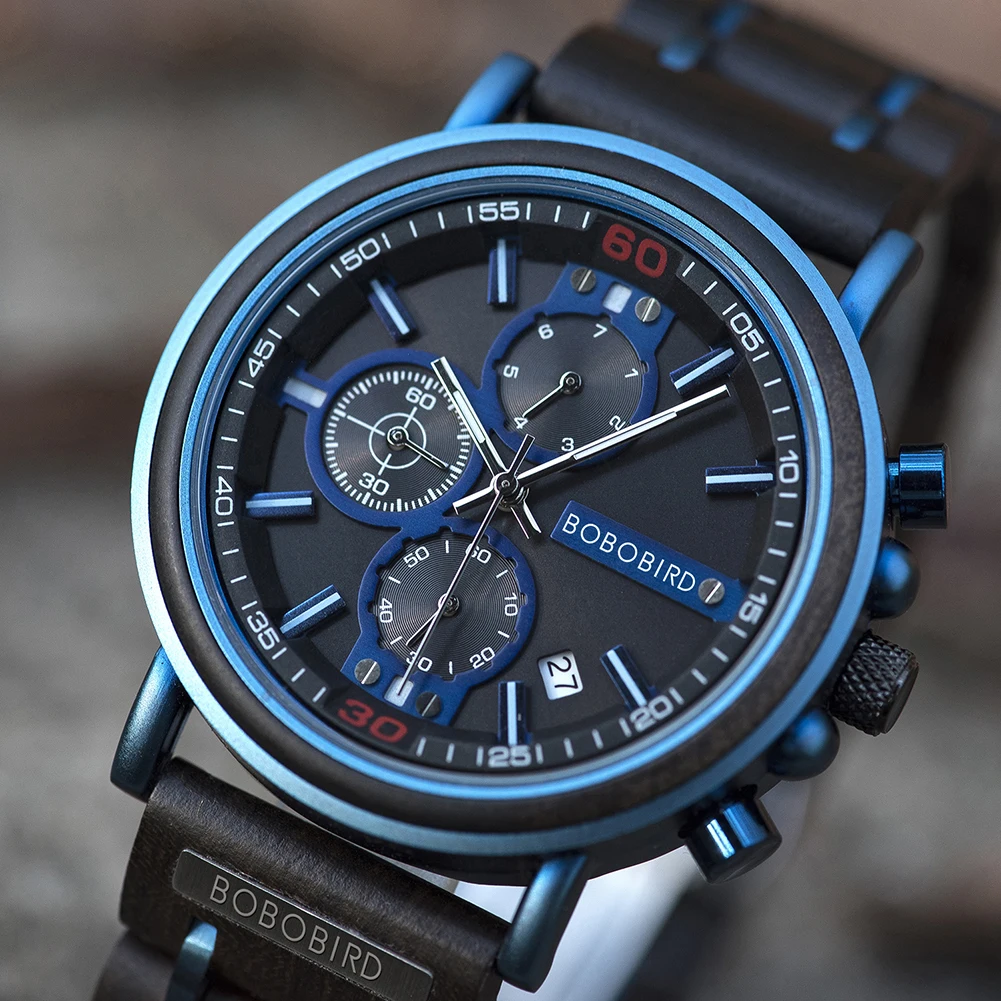 BOBO BIRD мужские деревянные военные часы из нержавеющей стали с автоматическим отображением даты наручные часы с хронографом светящиеся руки на заказ Прямая поставка