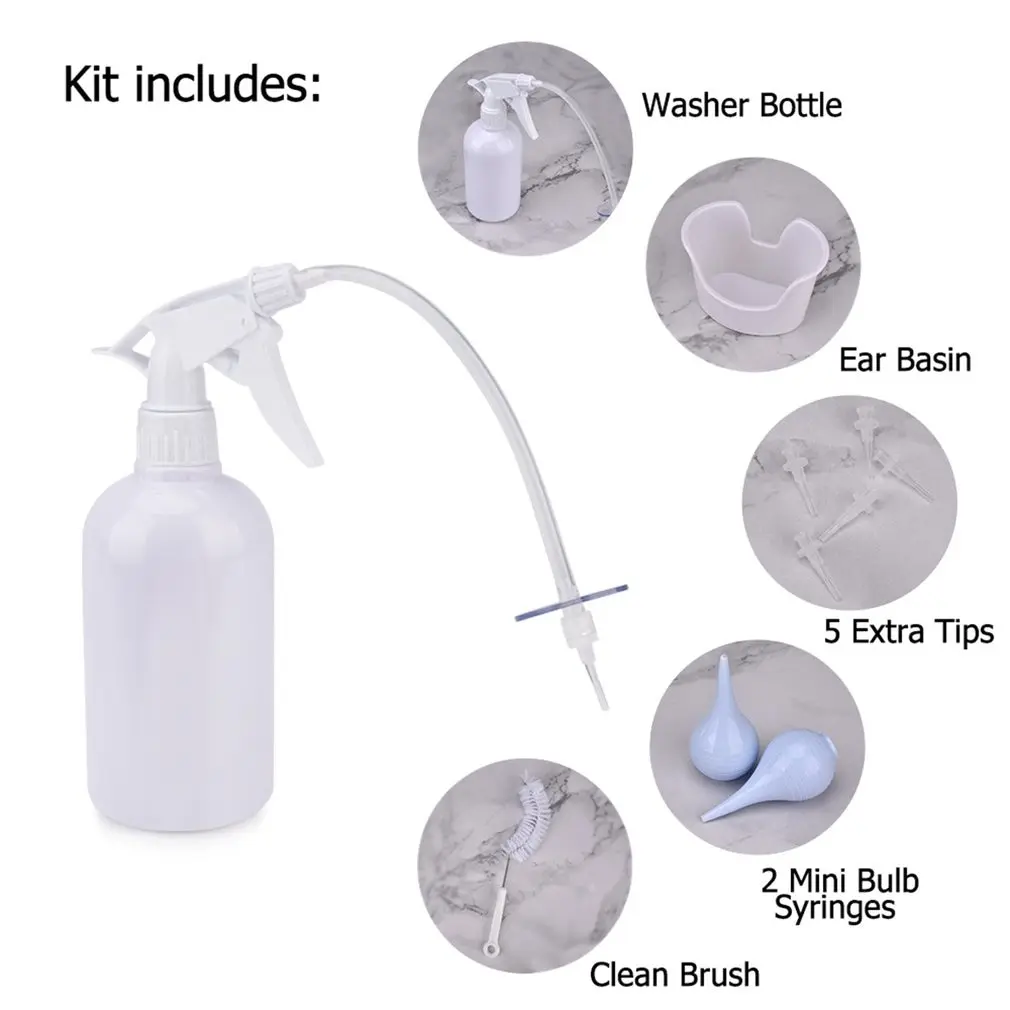 Особенности: 1. Безопасность и эффективность: система очистки ушного воска-это та же система орошения ушей, которая широко используется во многих медицинских кабинетах. 2. Наиболее Эффективная очистка: для пораженного уха эффект лучше, чем любой другой удалитель ушной серы. 3. Простота использования: сначала используйте смягчающие капли, наполните бутылку для ирригации, как указано, а затем очистите уши. 4. Предотвращение инфекции: Наконечник иглы можно заменить, чтобы избежать инфекции разных людей. 5. Прочный материал: Этот продукт изготовлен из высококачественного материала, прочный, длительный срок службы, прочный и стабильный в использовании. Описание: Это уникальное направление удаления ушной серы с промывочной головки приводит давление воды к внешней стенке ушного канала, генерируя нестабильность и ускоряя расход. Характеристики: Материал: пластик Цвет: белый Бутылка для очистки: 500 мл Посылка 1 Ушная шайба 1 х Бутылка для очистки ушей с распылителем 1 х ушная раковина 1 х гибкая трубка 1 х колпачок с резьбой 5 одноразовых наконечников 1 х Чистящая Щетка