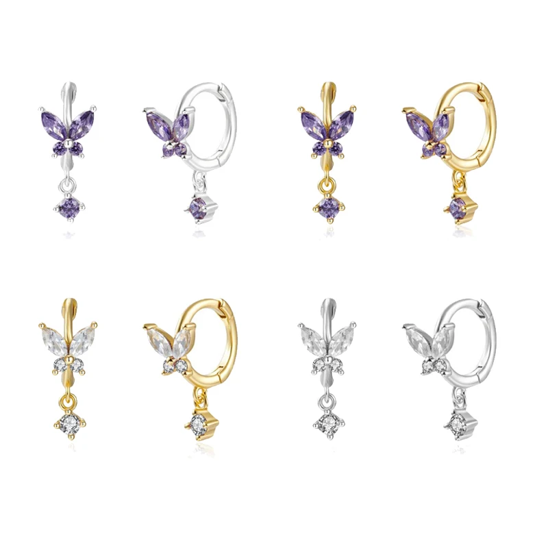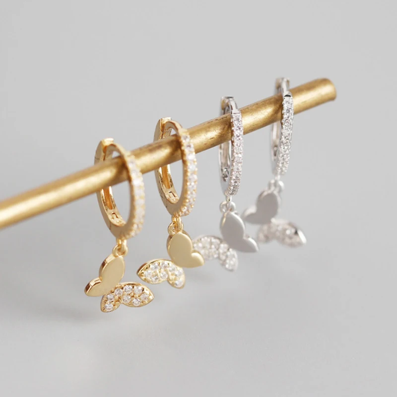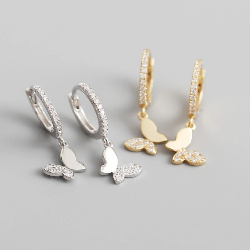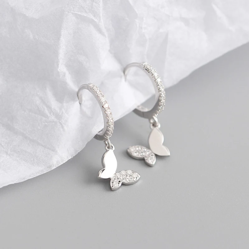 Женские серьги-кольца из стерлингового серебра 925 пробы с пряжкой-бабочкой, серьги-подвески с кристаллами Huggie, подарочные серьги с кисточкой