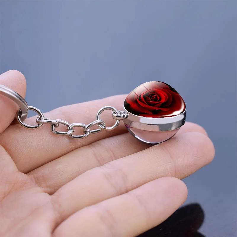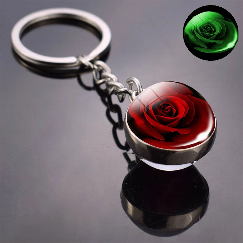 Светящийся брелок в виде розы, Синий брелок с изображением розы, двусторонний кабошон, стеклянный шар, брелки в виде Розы, ювелирные изделия для женщин, подарок на день Святого Валентина