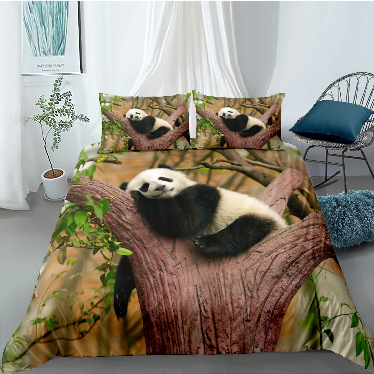 Комплект постельного белья с рисунком милой панды, одеяло с 3D принтом, пододеяльник с наволочками, односпальный, двуспальный, Королевский, постельное белье