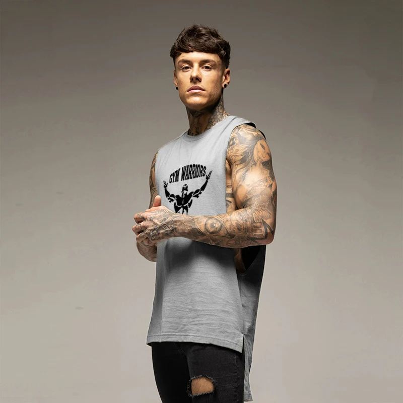 Новая мужская Удлиненная рубашка без рукавов с вырезами, майка-Стри...