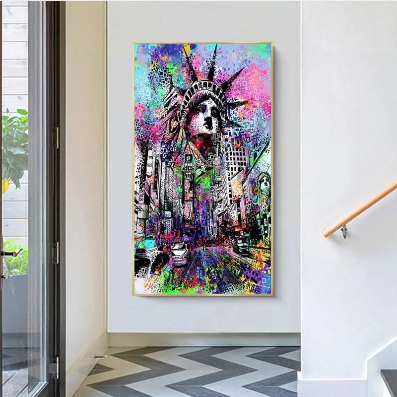 Красочная уличная Картина граффити на холсте Абстрактная Статуя Свободы плакаты и принты настенные картины для гостиной