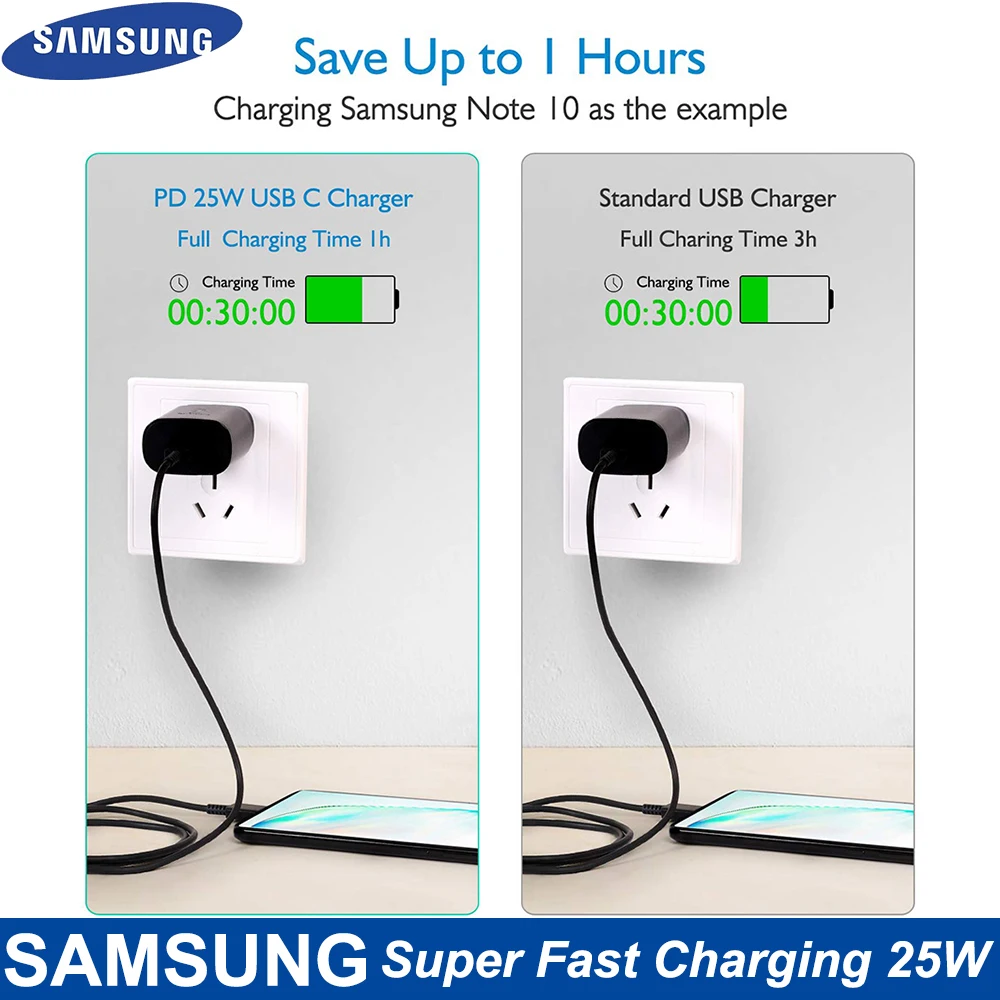 Оригинальный супер быстрый зарядный адаптер для Samsung Galaxy Note 10, 25 Вт, PD зарядное устройство 100 см, внешний кабель для S20 Ultra S20 Plus S20