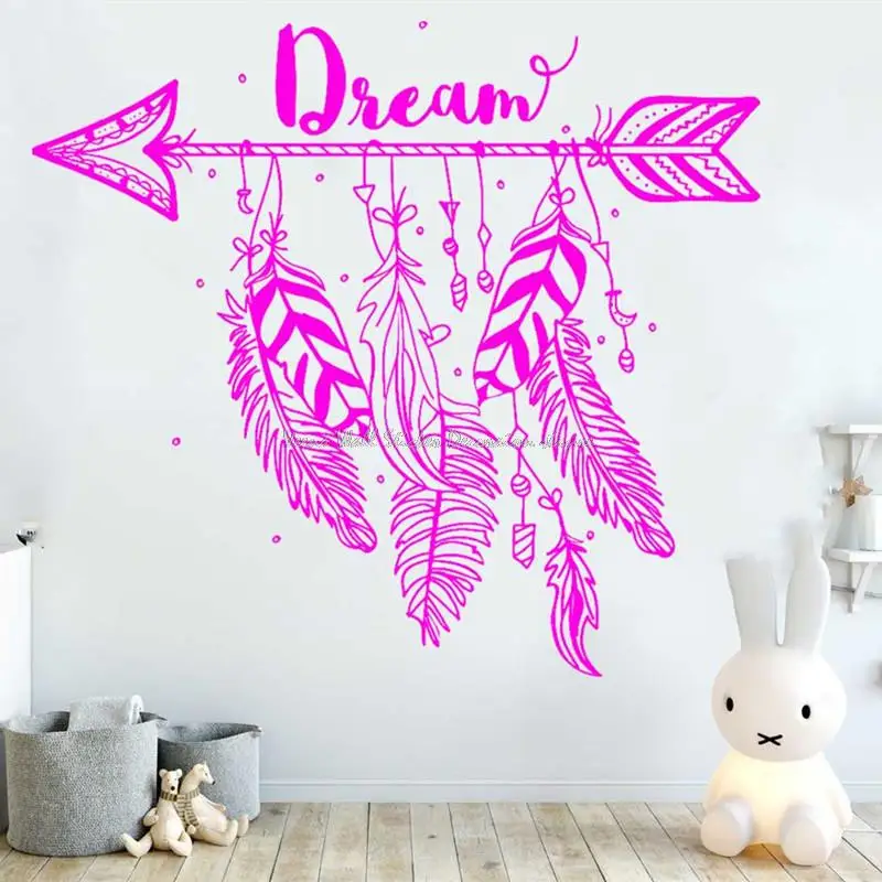 Виниловая наклейка на стену с изображением стрелы пера мечты племенного тотема амулет для детского сада детской комнаты спальни арт-деко Настенная Наклейка Стикер роспись подарок