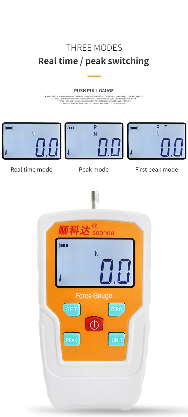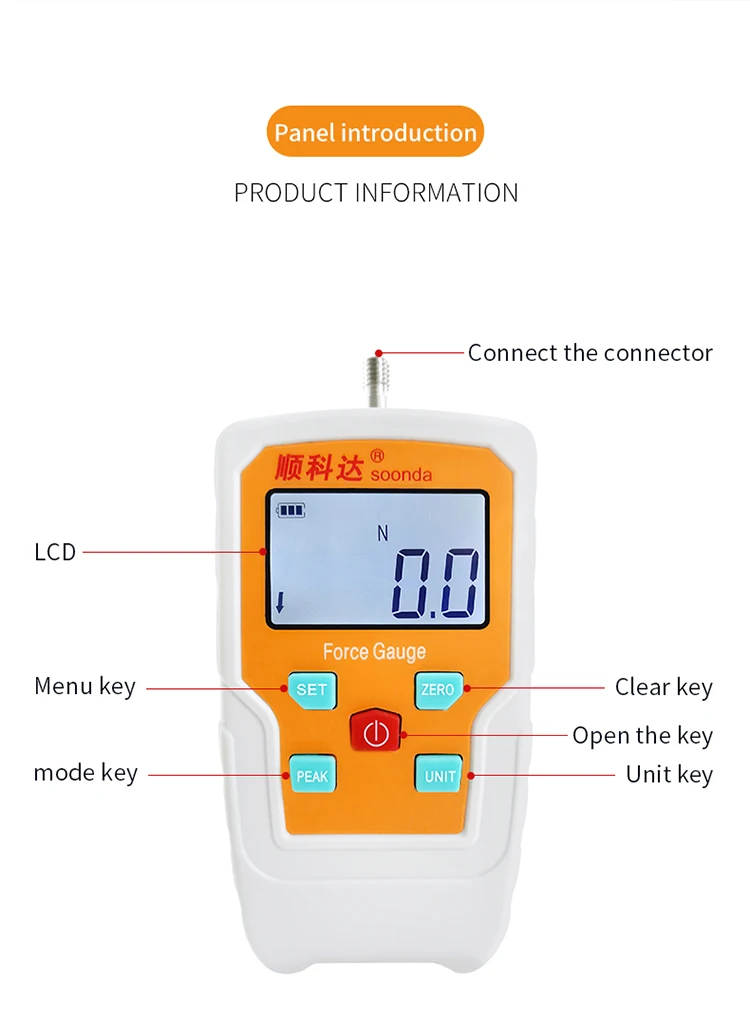 SOONDA 2N-500N,Kg,Ib,Oz, силовой инструмент, измеритель силы, цифровой манометр, пружинный динамометр, машина для испытания на растяжение, тестер на растяжение