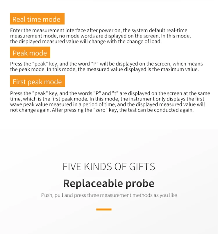 2. Три режима измерения для выбора (в режиме реального времени, пик, Первый пик);