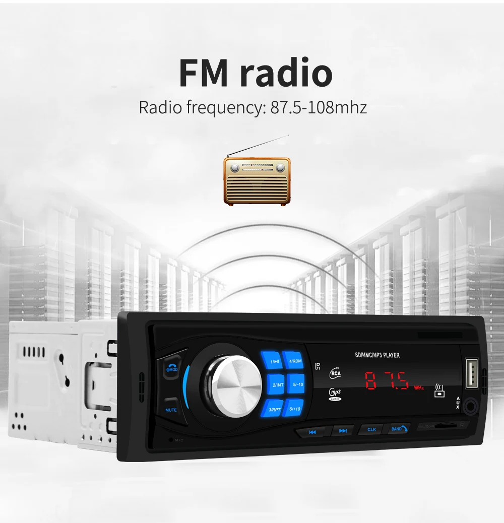 Автомагнитола, совместимая с Bluetooth, 12 В, автомобильное стерео радио, FM, Aux-IN, вход, приемник, SD, USB, In-dash, 1 din, автомобильный mp3-плеер